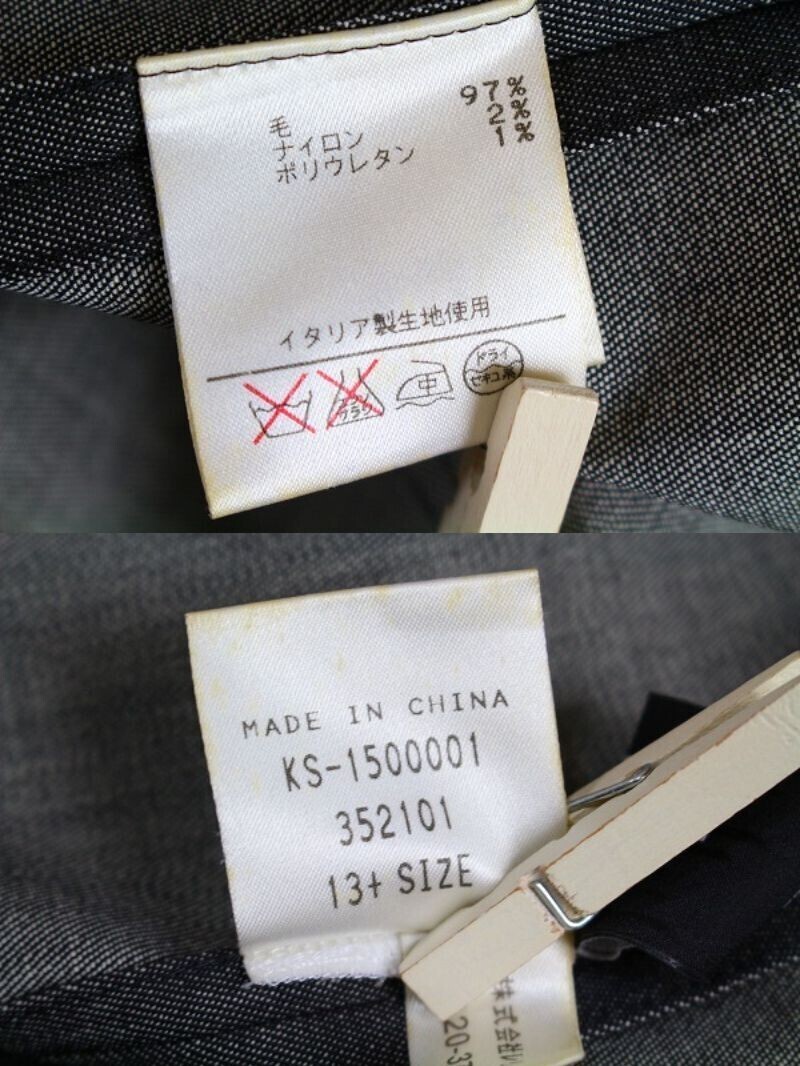 【表記サイズ】13+ 【カラー】濃いグレー ※撮影時や画面の明るさにより色が変わる場合がありますのでご了承ください。 【実寸サイズ】肩幅 37㎝・着丈 57㎝・身幅 110㎝ ※平置き素人採寸の為、多少の誤差はご理解下さい。 【商品状態】 画像7枚目のようになっておりますがその他は綺麗な状態です。 ※一人で状態確認をしています。見落とす場合もありますのでご了承下さい。 |