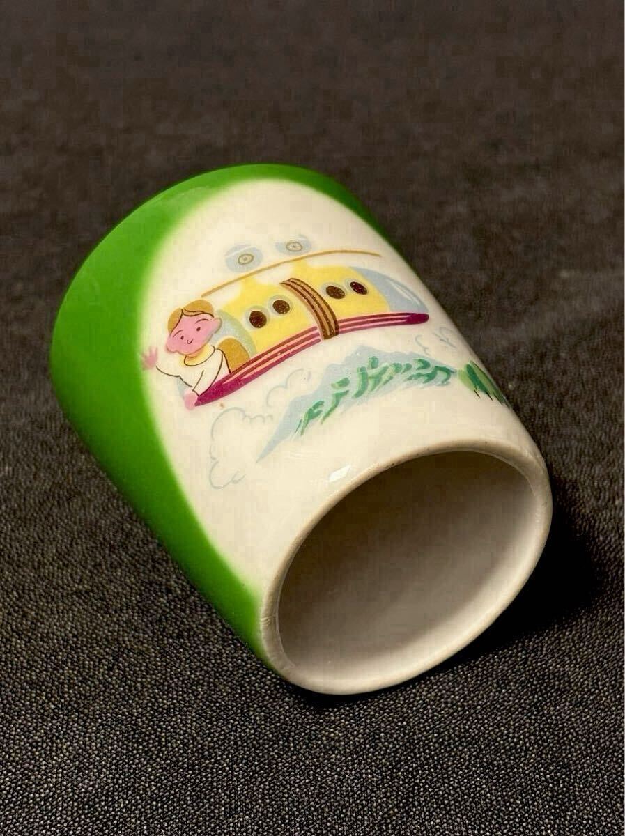 かわいい骨董です。戦後の昭和20〜30年代の瀬戸の磁器。ノリタケに準ずるメーカーのものだと思います。きれいな緑釉に笑顔でロープーウェイに乗る男の子。日本にロープーウェイがはじめて作られたのは昭和初期。戦後すぐの日本でも子供たちの憧れだったのでしょう。何ともかわいいです。産まれは当時の子供用の湯呑みでしょうが、今は筒盃としてピッタリのサイズです。状態もうれしい無疵完品。サイズは高さ5.9、口径5.3、高台4.3センチくらいです。この機会にいかがでしょうか。当方酒器を中心に出品しております。よろしければ出品者の他の出品もご覧ください。発送はヤマト便で行わせていただきます。送料は一律800円(沖縄1500円、北海道は1200円、離島は1800円)です。ご不明な点はご質問欄よりお気軽にお問い合わせください。| 出价者 | 信用 | 价格 | 时间 |
