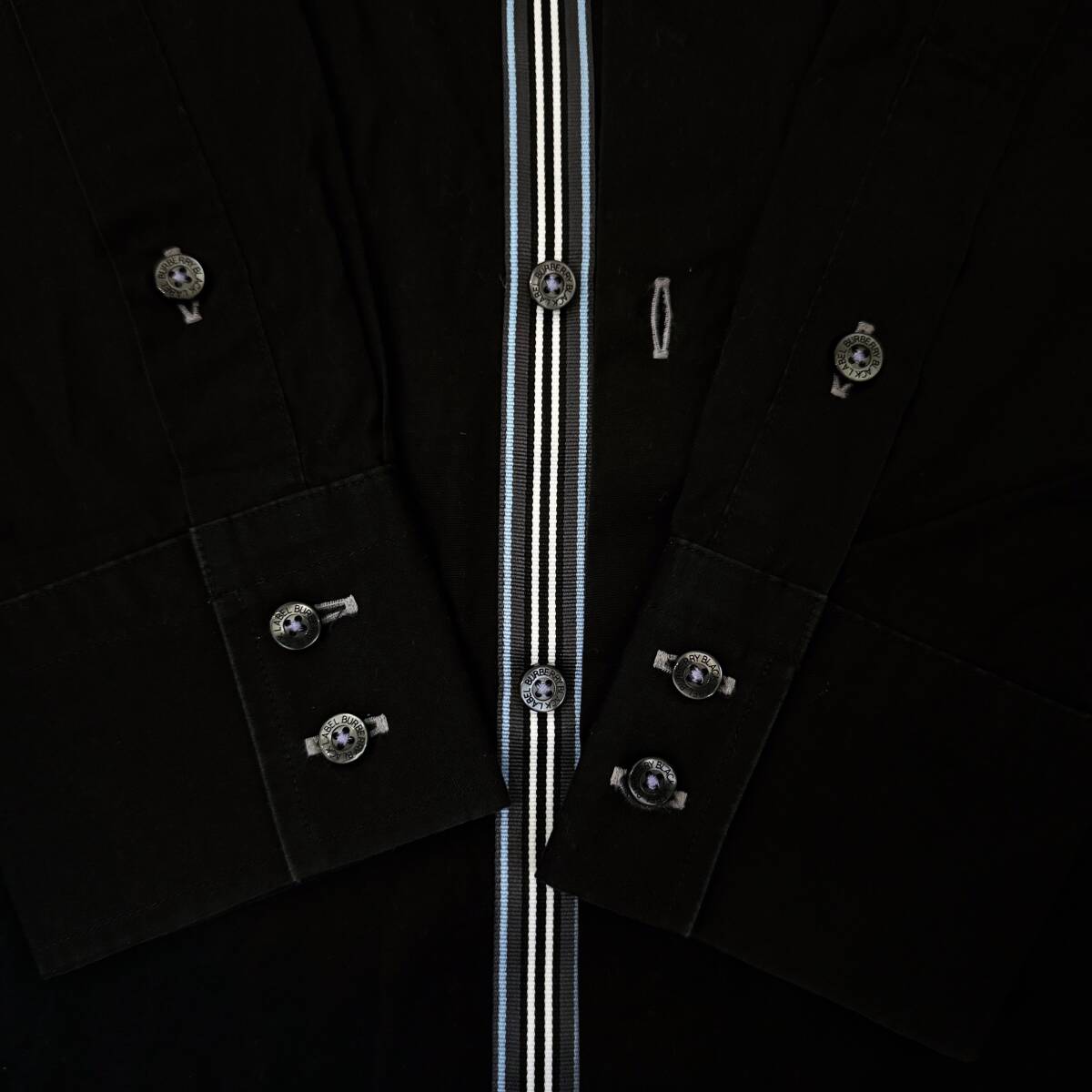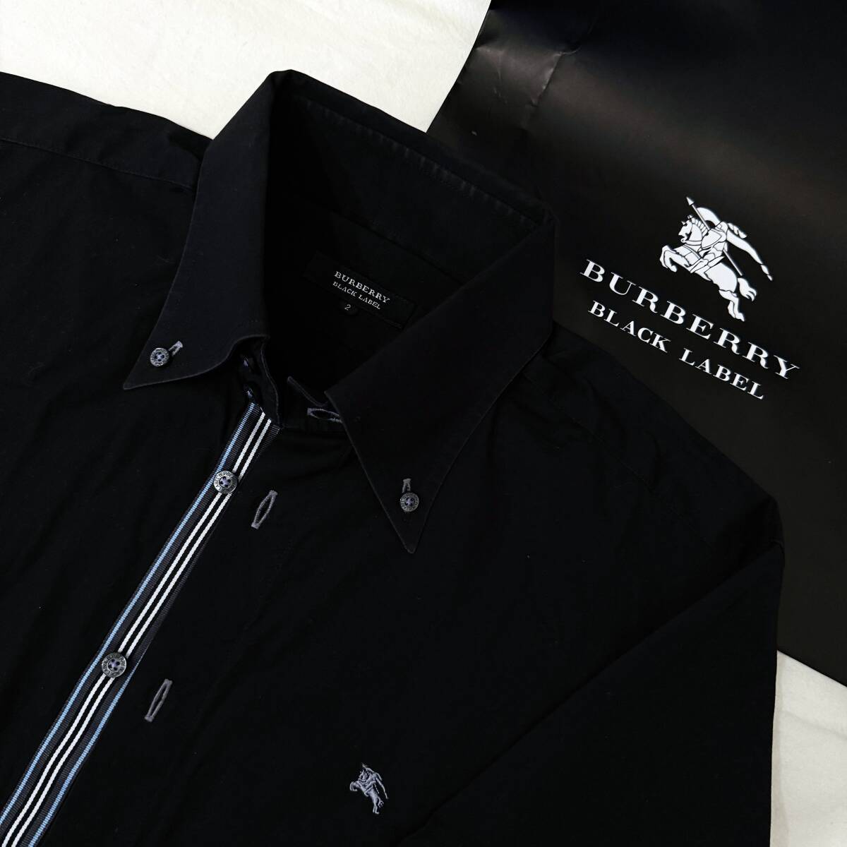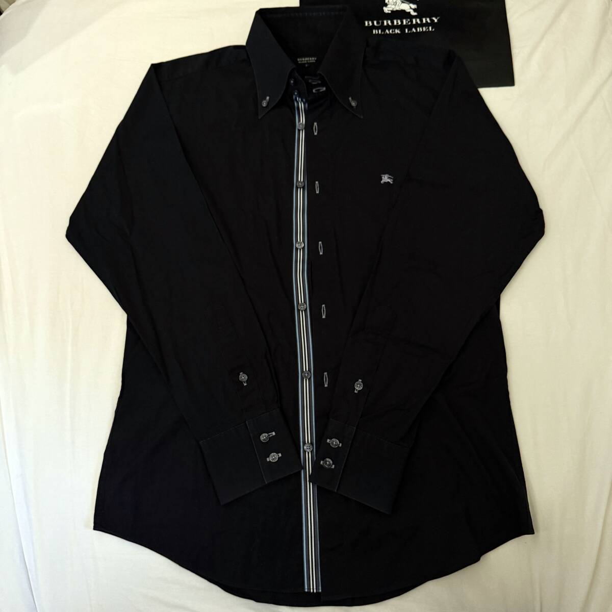 | 名作 BURBERRY BLACK LABEL バーバリーブラックレーベル ドゥエボットーニBDシャツ 前立ノバストライプ 黒 2(M) #3223 | |