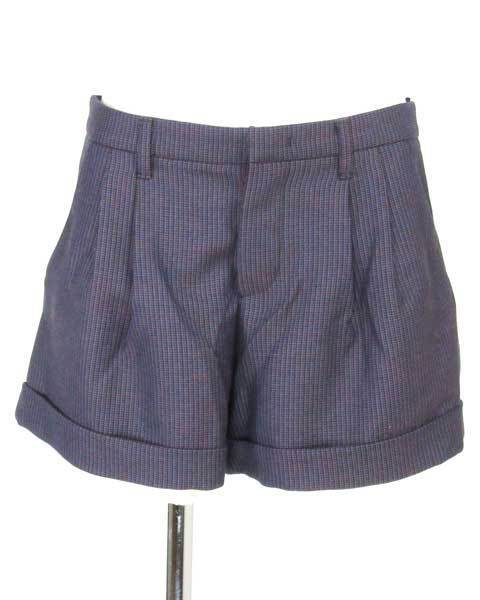 | 大人可愛いミュウミュウらしいショートパンツ。細かい糸のパープル調のチェックがポイント。キュートにもシックにも着て頂けますよ。抑えたお色目なので、主張しすぎないアイテムです♪ |