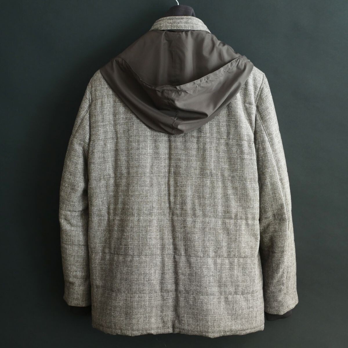 ●イタリアらしい sartoria〈サルトリア〉ブランド LARDINI(ラルディーニ) が手掛けた、中綿入りカシミヤ混紡アウターコートでございます。上質なヘリンボーン調の柔らかな表情に、ラルディーニらしい端正なシルエットが美しく交差した、大人のエレガンス漂う一着です。スーツやジャケットの上からもバランスよく羽織れる設計で、ビジネスからオフスタイルまで幅広くご活用いただけます。 ●フロントはスナップボタンとファスナーの二重構造となり、防風性を高めた実用性の高いディテールです。インナーには中綿入りのキルティングライナーを備え、冬シーズンでも快適な着用感をキープしてくれます。内側には便利な内ポケットが付き、貴重品の収納にも最適でございます。 ●表地は、カシミヤ混ならではのしなやかさと暖かみを感じる上質なタッチが特徴で、織りの立体感から生まれる豊かな陰影が、装いに深みを与えます。袖口にはリブを配し、冷気の侵入を防ぐと共に、重ね着の際にも袖がもたつきにくい快適な仕上がりとなっております。アーム部分にも中綿入りですので、見た目以上に真冬も暖かです。 ●背面には収納ナイロンフード付きで、さりげなくスポーティーなニュアンスを加えたラルディーニ特有のモダンなデザイン。フードは軽量で収まりが良く、上品なウールコートの雰囲気を損なうことなく、雨天時や寒風時にも対応できる心強いディテールでございます。 ●フロントのフラップレスポケット、襟元の花形モチーフ(ブートニエール)、刻印入りボタンやラベルワークなど、随所にラルディーニらしいクラフツマンシップが宿っています。軽やかさと上品さを兼ね備えた、非常に完成度の高いアウターで、これからの季節に重宝いただけることと思います。 ●中わた入り。フロントレイヤード仕立て。フロントダブルジップ&スナップボタン。襟後ろ収納フードのあしらい。表内ポケットあり*スナップボタン付き。内襟、内袖口ウール混リブニット。総裏地付き。付属品はございません。 ●色:メランジスモーキーブラウン系 ●素材:ウール96% カシミヤ4% 裏生地:ポリエステル100% 詰め物:ポリエステル100% リブニット部:ウール87% ポリアミド9% エラスタン4% ●サイズ:52 *52サイズの方向けとなり、また50の方もご利用頂けそうです。日本サイズ概ねXLサイズ辺りとなりますが、下記詳細サイズもご確認の上、よろしくお願いいたします。 ●詳細サイズ(cm)置いた状態で: 肩幅:48(右肩端~左肩端の直線距離) 身幅:60(右脇下~左脇下の直線距離) 袖丈:65.5*袖先リブ部約2.5 *袖は、リブにて手首で止まる感じです。(肩の縫い目~袖先) 着丈:76.5(襟の付け根~裾まで。襟の幅を含んでいません) 詳細サイズご参考 ※大よその採寸となります。 ※お品物はタイトルにございますもののみとなり、着合わせのお洋服や小物などがございましても、それらは含まれません。 ※素材の特性上、多少のことはご容赦くださいませ。 ※ご質問は、必ずご入札前にお願いいたします。(ご入札後、ご落札後の取引ナビからのご質問はお避け下さい) ☆☆☆ご連絡・お支払い(かんたん決済)☆☆☆ ご落札後24時間以内に、取引ナビからご連絡(お名前・ご住所全て。*サイズ選択いただけるオークションはサイズのご連絡も含め)・かんたん決済可能な方。 *銀行振込の場合は翌営業日、コンビニ決済はご落札後2日目の午前中まで、お支払いをお済ませ下さいませ。 電話応対は、一切致しておりません。取引ナビをご利用下さい。 ☆☆☆受け取り連絡☆☆☆ 製品到着後24時間以内。*出来る限り、到着日当日に受け取り連絡頂きましたら幸いです。 *配達日指定ご希望の際は、ご落札後、最長4日以内に「受取連絡」ができるようお願いします。(北海道・沖縄・離島の方は5日以内) *特別に記載をしました際には、そちらを優先させていただきます。 ☆☆☆同日に2点以上のご落札の場合☆☆☆ 「まとめて取引」を、最初にご選択ください。 *「まとめて取引」を、お届け情報などご入力前にご選択ください。同梱発送となり、一品分の送料のみとなります。 *「まとめて取引」をご選択されなかった場合、出品者側では送料訂正できませんので、予めご了承くださいませ。 新規IDの方は、こちらを必ずご覧くださいませ ☆☆☆ご入札及びご落札のキャンセルはしていただけません☆☆☆ ![]() 【お支払い】 合計金額 = ご落札価格 + 送料 ◆かんたん決済(ご落札後24時間以内に支払い手続きを完了ください。) *2点以上同日ご落札の場合は、『まとめて取引』をお選びください。 *領収書がご必要の際:ご落札後Eメールアドレスを、取引メッセージにてお知らせ下さい。電子領収書をEメールに添付してお送り致します。 !かんたん決済は、!の商品代金の支払い、受け取りを簡単安心に行える決済サービスです。ご落札者様は、クレジットカード、コンビニ支払い、銀行振込はもちろん、!マネー、Tポイントも利用できるお支払い方法です。 【発送】 発送は、ク