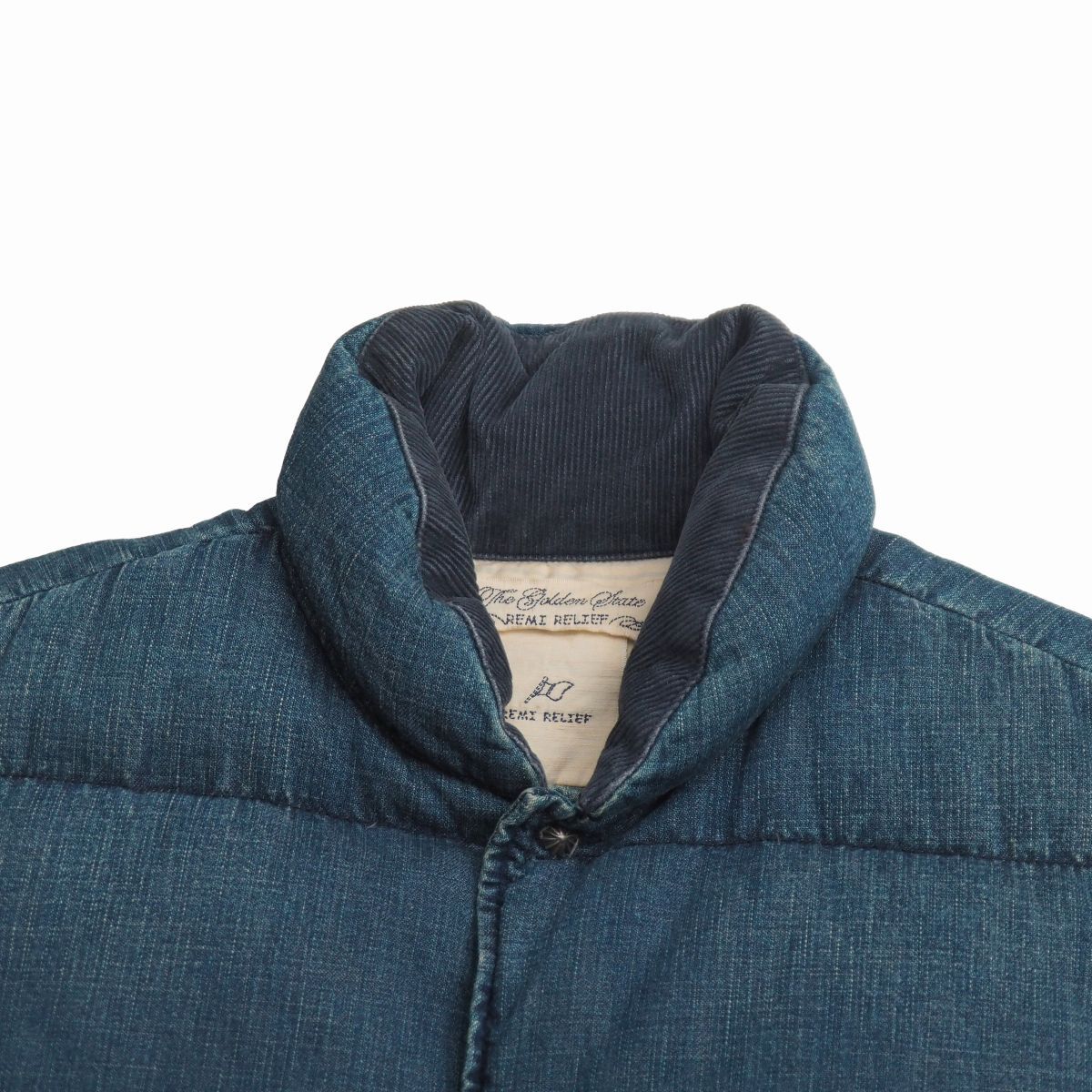 | MH9361▽REMI RELIEF/レミレリーフ*メンズS*ダウンベスト*デニム*ジップアップ*スタンドカラー*コンチョボタン*ブルー系 | |||