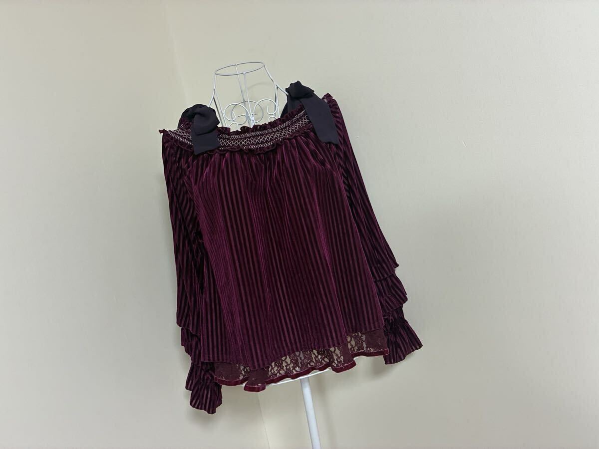 | 自己紹介欄にて発送対応させて頂けない日をお知らせしていますのでご確認をお願いします。 ショッパーは付きません。 サイズ:M 着丈: 約50cm(後ろ身頃中央部分、裏地裾ベロアまで) 肩幅: 約 36cm〜(ゴム入り) 身幅平置き:約52cm〜(少しだけ伸縮性があります。) 袖丈:約57cm ※素人採寸の為少しの誤差はご容赦ください。 色:ワイン、パープル系 状態:usedですので、小さな汚れ等気にされる方、usedに新品同様のクオリティをお求めの方、話し合いも頂けず評価よりクレームをお申し出になられる方はお控え下さい。 裏地裾にベロア飾り幅広レースが切り替えられたシフォンリボン付きベロア生地オフショルプルオーバートップスです。 襟周りはゴム入りでステッチが施され、お袖口はプリーツが寄せられたデザインでゴムが入っています。 一同梱発送、送料について一 佐川急便での発送の際のみ3日間分同梱発送します。 最初の落札日を含む3日間分です。 ご不明な際にはお問い合わせ下さい。 4日目分以降の同梱はお受けしませんので必ずご了承の上ご入札お願いします。 佐川急便の送料は 北海道1000円 東北800円 関東から九州は700円です。 沖縄は1800円 離島は別途中継料金がかかります。 佐川急便以外の発送はお受けしません。 | |||