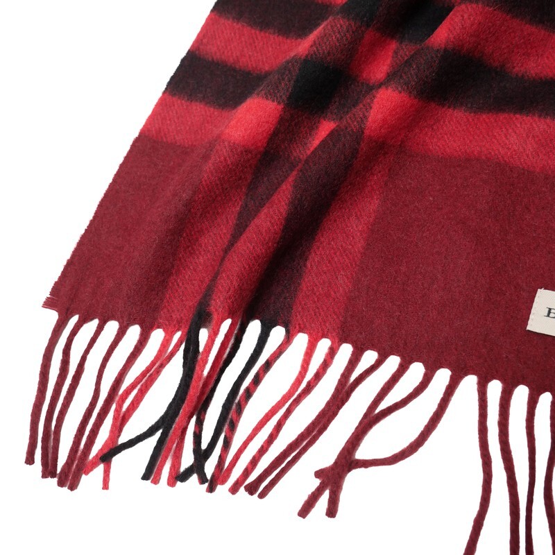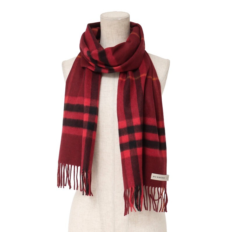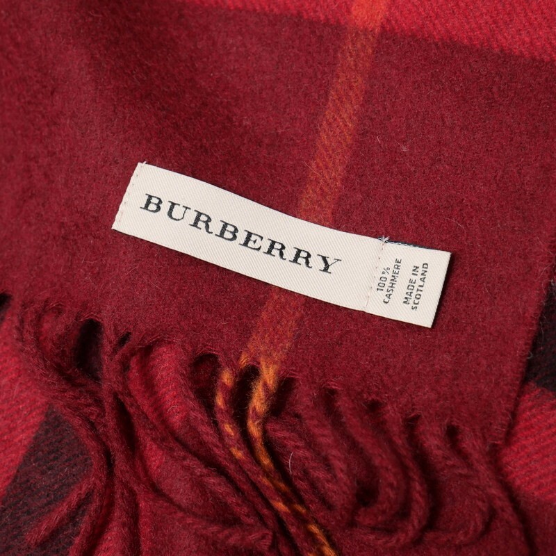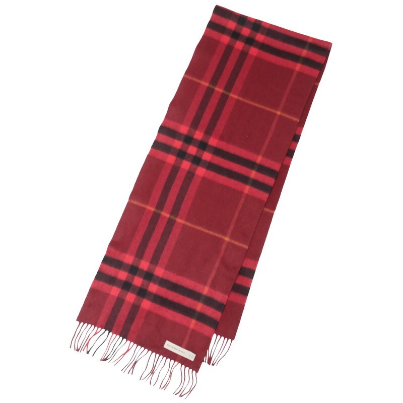 | MI3480*スコットランド製 BURBERRY バーバリー カシミヤマフラー ストール チェック柄 レッド系 | |||
