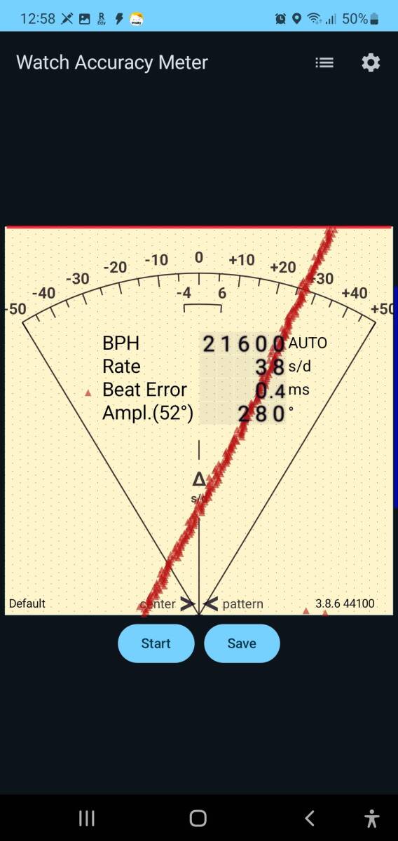 ゼンマイをフルに巻いた状態で、スマホのアプリで計測した画像を参考まで