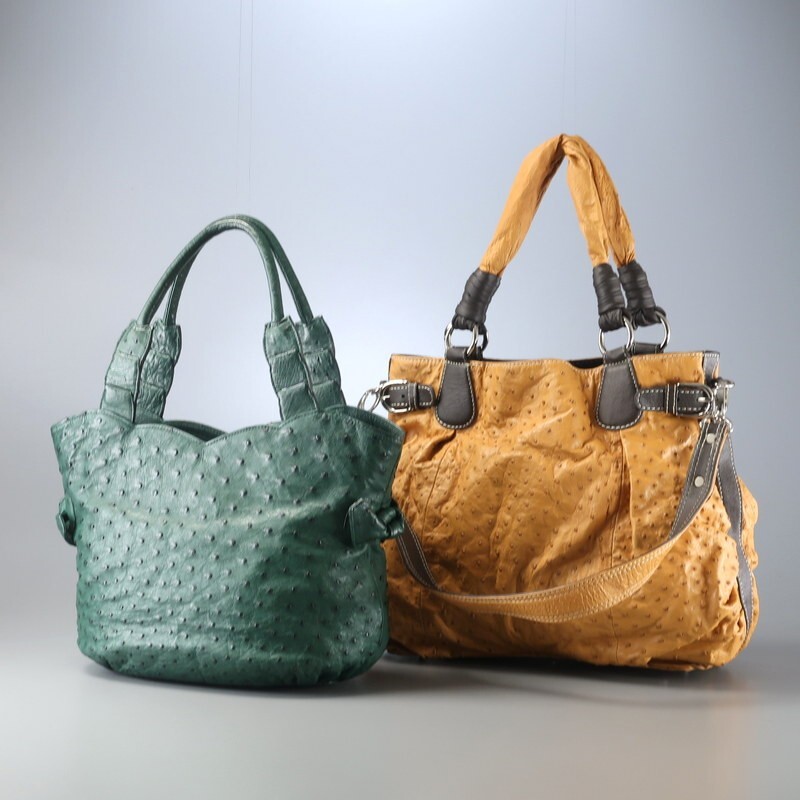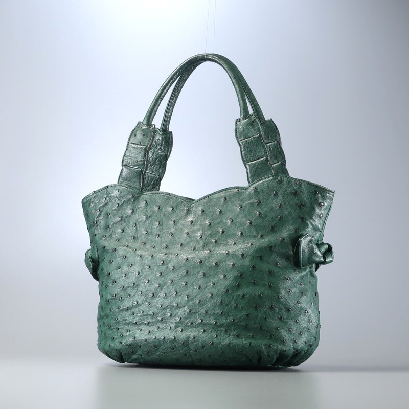 | MI3365□《2点セット》オーストリッチレザー 本ダチョウ革 ハンドバッグ 手提げ ショルダーバッグ 肩掛け 鞄 レディース 緑系/茶系 | |||