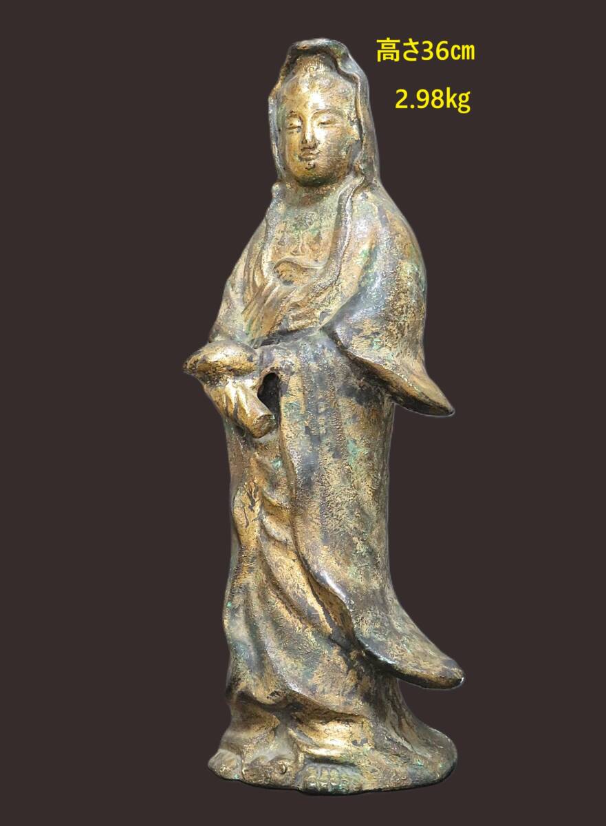 | 観音菩薩 36㎝ 仏教美術 置物 仏像 金属製【送料無料】 | ||