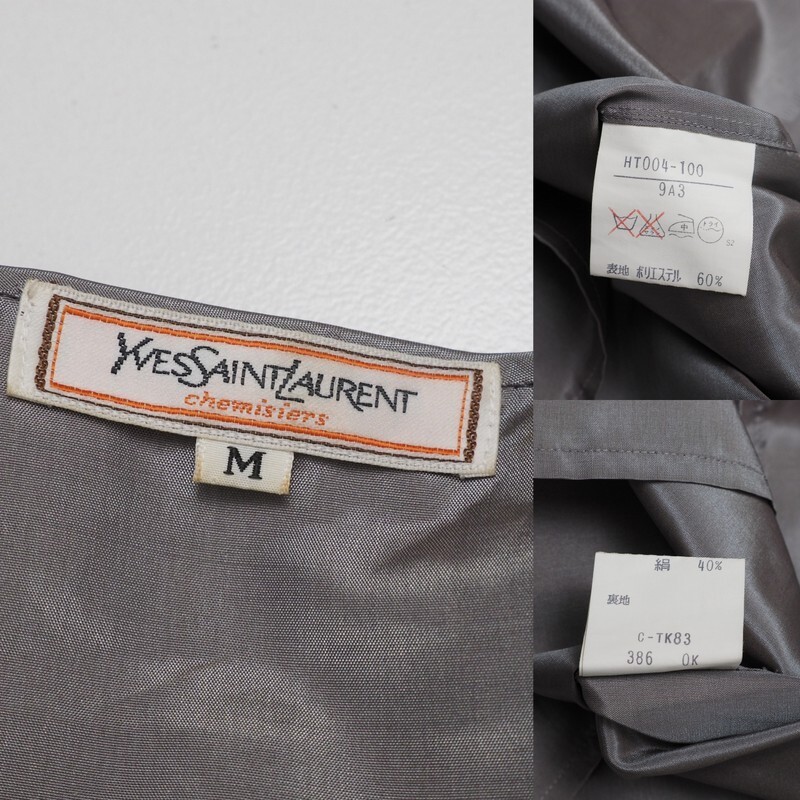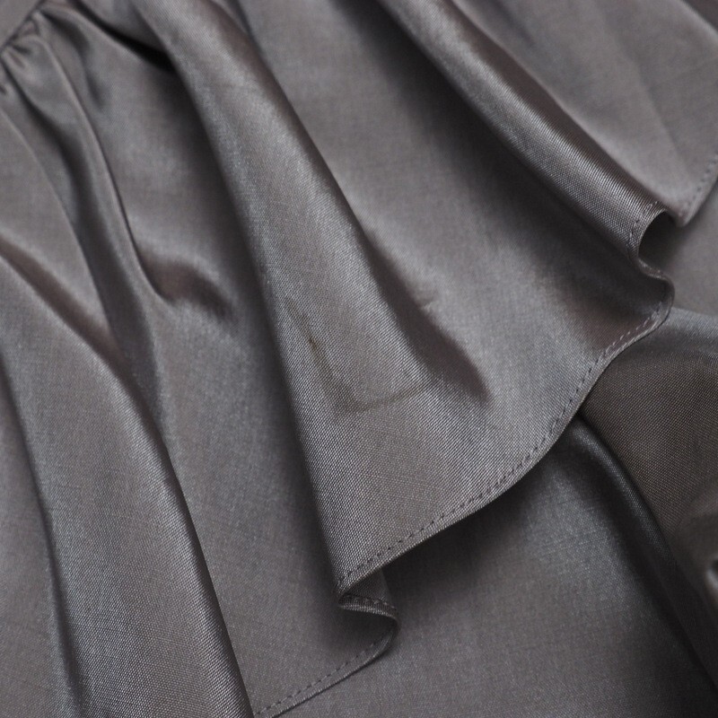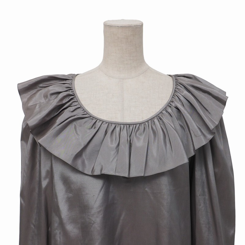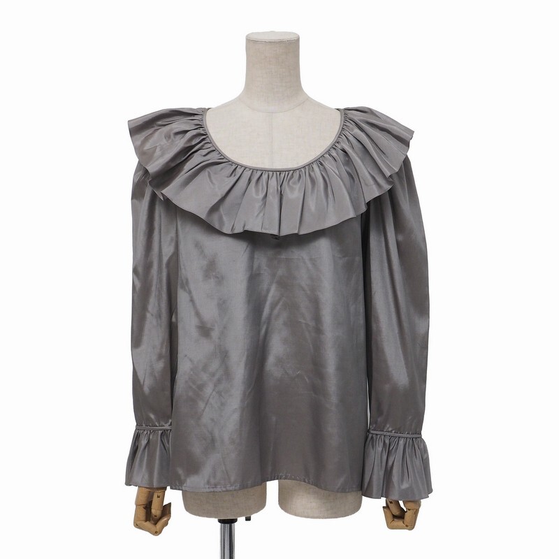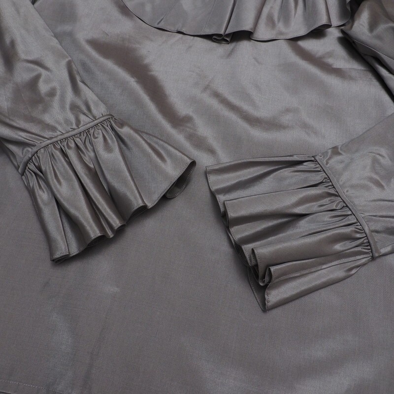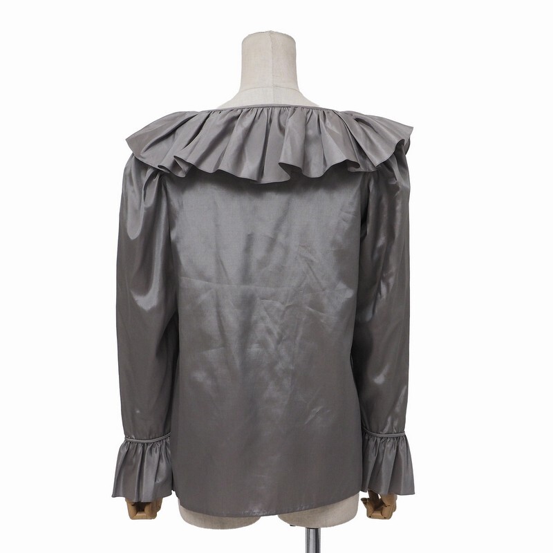 | TJ7062=イヴサンローラン/YvesSaintLaurent*ヴィンテージ*シルク混*ブラウス*シャツ*光沢感*ラッフルカラー*M*グレー系 | |||