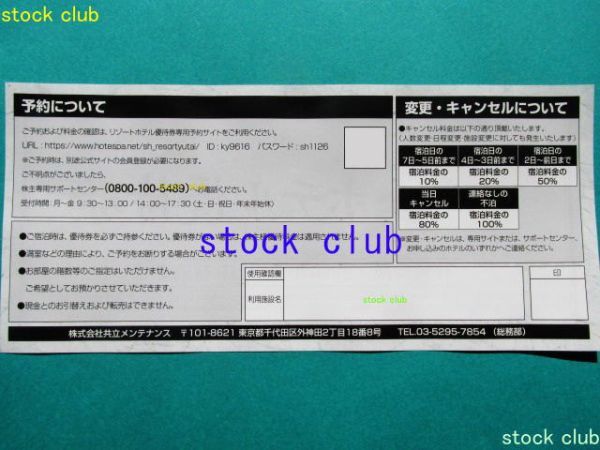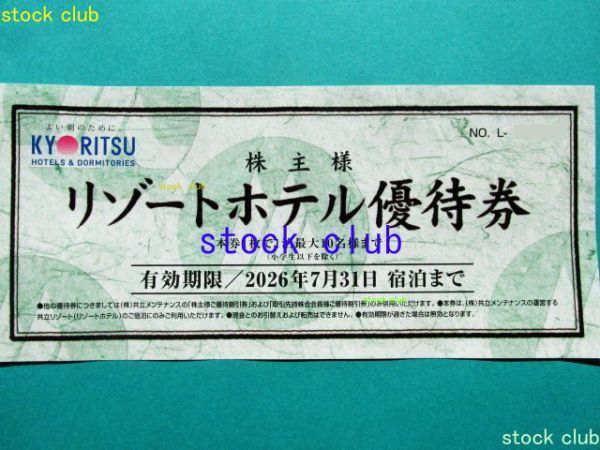 | 商品説明 | 共立メンテナンス 株主優待の株主りゾートホテル優待券1枚です。 詳しくはこちらをご覧下さい。 |