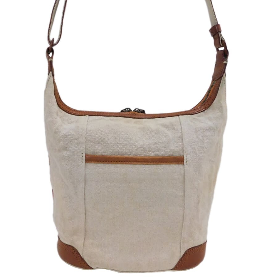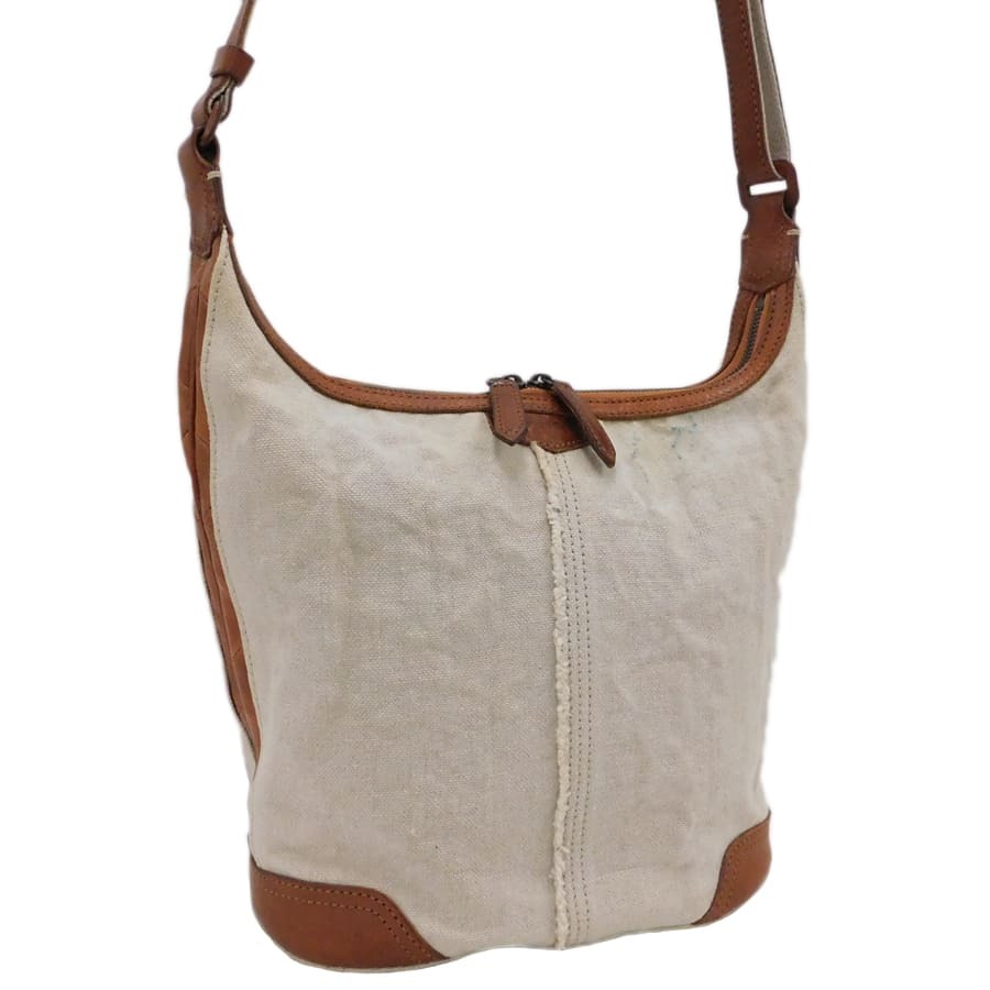 1円■ゲンテン/ショルダーバッグ/ベージュ×ブラウン系/キャンバス×レザー/普段使い/genten ■E.Bsm.pS-28[中古]