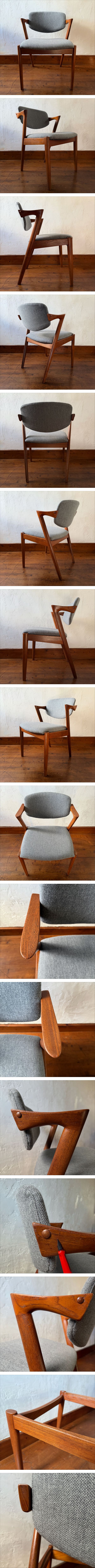 1957年.デンマーク.Schou Andersen社.Kai Kristiansenデザインによるダイニングチェア「No.42」。チーク材のフレームに可動式の背もたれ,取り外せる座面内部はウェービングテープ仕様となっております。状態 ….ファブリック.座面&背内部ウレタン,ウェービングテープは新規交換済。フレームは専門工房にてヴィンテージ感を損なわない様にメンテ,補修済。グラツキ等,構造的な問題はありません。寸法…W53.5xD51.5xH73cm.SH44cm.AH64.5cm。