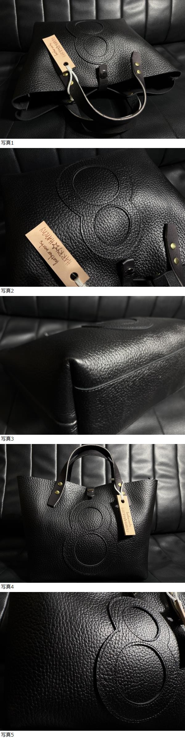 | ハンドメイド☆3☆漆黒ラギット!両面仕上げ厚革シュリンクミニトート☆8☆男女兼用☆持手:北米産ステア ミニサイズ☆裏地レス | |