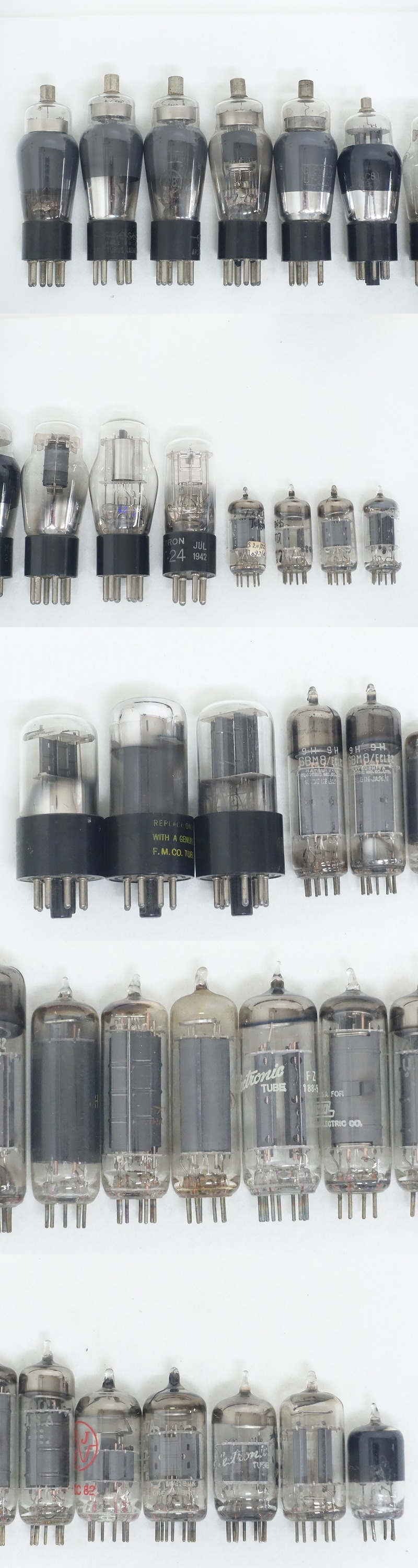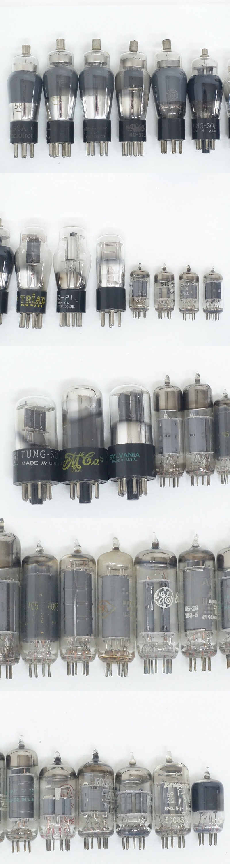 ■Mullard ECC82/RCA 58/General Electric 12BH7A 他 真空管 29本セットでの出品となります。 ※1本ダイヤマーク入りです。 【商品の状態 当店での確認内容】 動作未確認のため、現状での出品とさせて頂きます。 ※ピン曲がり/文字消えしている所がございます。 ※振ると内部で音がします。 ※箱と中身が違う可能性があるため画像にてご確認下さい。 「商品の状態」に関しましては当方主観の目安となります。外観などは中古品で個人差もありますので詳細は画像にてご判断ください。 画像にて不明な点はご質問下さい。 出品商品は画像のものですべてになります。画像に写っているもの以外は付属いたしません。 【送料 全国一律 950 円 沖縄、離島は別途お見積り】 ※送料がお得になるサービスです(下取りシステムのご案内です) ストア決済利用時にクレジットカードやPayPay残高/PayPayクレジットを利用の方は留意点がございますのでこちらを参照上ご利用ください。 当ストアでは商品を安全にお届け出来るよう提携運送会社と協議の上、発泡緩衝材や強度段ボールの使用等 運送会社が指定する梱包方法や資材を採用しております。 より安全にお届け出来るよう商品仕様により梱包サイズが大きくなる場合や個口数が増える事がございます。 【当ストアオークションルールを入札前に必ずご確認ください。】 【落札後の取引手順】 ・落札後は取引ナビにて、必要事項をご入力後、送信ください。 取引終了後48時間(土、日は除く)以内に入力をお願い致します。 ※ご連絡が頂けない場合は落札者様都合でのキャンセルとさせていただきます。 ・落札代金(商品代金+消費税+送料)の入金をお願い致します。 ※大型商品の場合は送料確定後の決済となる為取引ナビを入力頂き、当ストアより送料のご案内が来るまでお待ちください。(土曜、日曜、祝日の場合は翌営業日より順次ご案内いたします) ・お支払い方法はクレジットカード/PayPay残高/PayPayクレジット/PayPay銀行/ゆうちょ銀行のみです。 ※商品代金引換(代引き)のお取り扱いはしておりません。 ※領収証の発行が必要な方はご連絡ください。 ※銀行振込の際の振込手数料はご負担願います。 ・入金確認後に出荷手配を致します。 (原則入金確認後3営業日以内に発送いたしますが、大型や重量のある製品はお時間をいただく場合もございます。) ・発送は当店指定の運送会社の元払いのみでの発送となります。 ※他の運送会社、送料代引き等は致しかねます。 ※落札者様ご自身での運送会社の手配いただく事も可能ですが荷物事故の責任の所在の問題上、梱包は致しかねます。 ※店頭にお越し頂き手渡しも可能(福岡市早良区)です。ご希望の方はご落札後にご連絡下さい。 ・大型/重量物商品の送料につきましては商品の特性上、荷降ろし状況等により送料が大きく前後し運送業者に別途見積りが必要な為、早めのお問い合わせにてお見積り上、入札をお願い致します。 【初期不良の保証について】 ・商品到着後の初期動作不良、また配送中の事故による破損、不具合が有る場合は、商品発送後10日以内に当ストアまでご連絡ください。当ストアでは修理での対応を優先させて頂きますが、修理不可の場合は全額返金させて頂きます。 (商品代金+消費税+送料のお支払い頂いた金額となります) 【初期不良の保証の対象外について】 次の場合は保証の対象外となりますのご留意ください ・ジャンク商品、現状商品、難あり商品での出品商品。 ※難あり商品に関しましては動作確認時に一部動作不良が確認された商品になり、記載している動作確認以外にも、動作不良がある可能性もございます。こちらに関しましても保証対象外となりますことをご理解ください。 オーディオ機器で前オーナー様が当店にてわからない範囲で部品が交換されている場合。 (当店でも全てのオーディオ機器の仕様は把握しておりませんので画像にてご判断、または入札前にご質問をお願いします) ・楽器類の特殊機材(マイクロスコープ等)での確認までは行っておりません。気になる方は事前にご質問いただくか、入札をお控えください。 ※初期不良に関しましては【商品の状態】に記載のもの、またそれによって起因する動作不良は対象外です。 ※商品発送後10日を過ぎてのご連絡は対応が出来ませんので、商品が到着しましたらお早めに確認をお願い致します 【メーカー保証の加入・継承】 ・未使用品、展示品やメーカー保証期間が残っている商品に関しまして、メーカー保証の加入、継承が必要な方は、落札後取引ナビ内にて当ストアにお知らせください。商品発送までにご連絡いただけない場合、メーカー保証の手続きを承れない場合があります。 【評価について】 ・評価不要の場合、必ず取引ナビの「要望欄」にてお知らせください。それ以外でご連絡をいただいた場合、対応できない可能性がございます。一度行った評価はシステム上取り消しが行えませんのでご了承ください。 【入札削除・キャンセ
