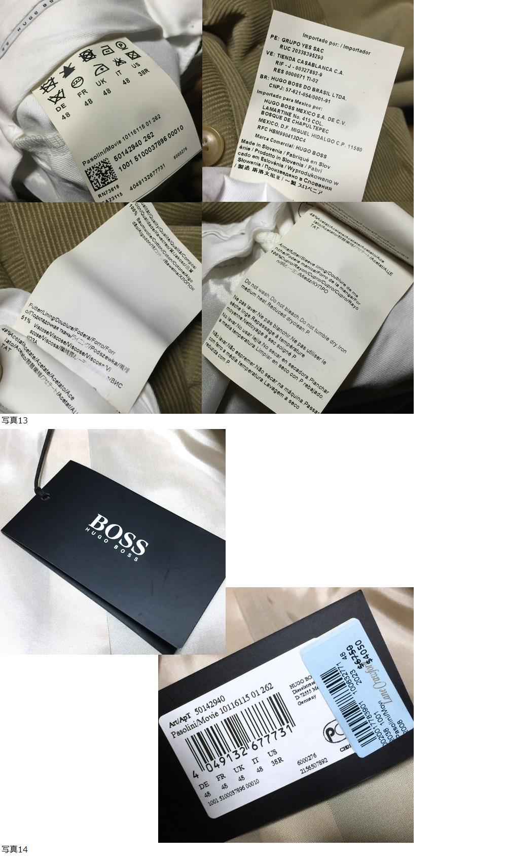 | 【ブランド】 HUGO BOSS ヒューゴボス 1923年創設、ドイツのラグジュアリーブランド。特に男性用高級スーツはその着心地の良さと現代的なデザインで人気があります。 【デザイン・モデル】 コットン コーデュロイ セットアップ スーツ 【生産】 スロベニア製 【詳細・コメント】 HUGO BOSS ヒューゴボス セットアップ スーツになります。高品質なコットンコーデュロイ生地を使用、上品な起毛感・ふっくら柔らかな肌触りが特徴の高級感溢れる逸品。落ち着いたベージュ系カラーに、美しいシルエット、畝が独特の表情を生み、こなれた雰囲気を醸し出し、雰囲気あるスタイルを演出してくれます。それぞれ単体でもご使用いただけます。 (ジャケット仕様)シングル2ボタン、袖口は4ボタン、総裏地、サイドベント。(パンツ仕様)ノータック、ジップフライ、スソはダブル仕様。格安にて出品しておりますが、100%正規品ですのでご安心下さい。 【サイズ】 表記: DE/FR/UK/IT 48、US 38R (メンズL程度) ※実寸を参考にして下さい。 平置実寸:(ジャケット)身幅54㎝ 着丈77cm 肩幅46㎝ 袖丈61㎝ (パンツ)ウエスト84㎝ 股上27cm 股下76㎝ ワタリ幅32㎝ 裾幅約21㎝ ※多少の誤差はご了承ください。 【カラー・パターン】 濃い目のベージュ系 ※ご覧になられるモニターや、デジカメの撮影具合によって色味が異なる場合がございますのであらかじめご了承ください。 【品質】 表地:コットン100% 裏地:レーヨン51% アセテート49% 袖裏:レーヨン100% 【コンディション】 ほぼ未使用品です。使用感無くとてもきれいです。まだまだ着ていただけます!※写真参考に判断して下さい。ユーズドアイテムにご理解ある方のみご入札お願い致します 。 | |||