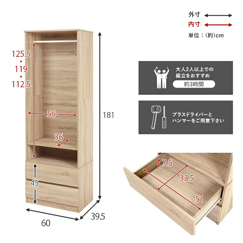 ![]() スリムワードローブ-RKK 幅60cm ナチュラル ![]() ![]() ![]()