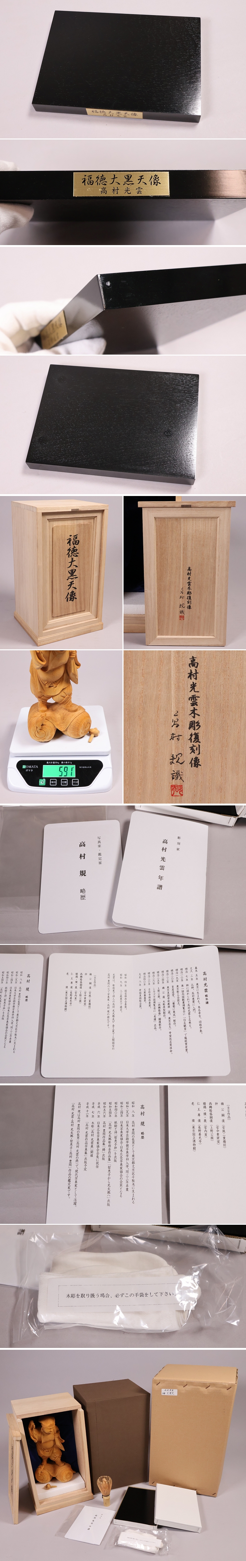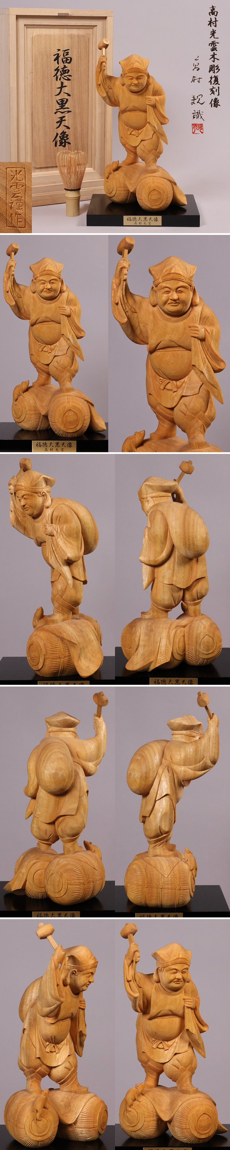 ◇高村光雲 木彫復刻像「福徳大黒天像」置物 台付 高村規識箱 彫刻 七福神 仏像【MB199】◇