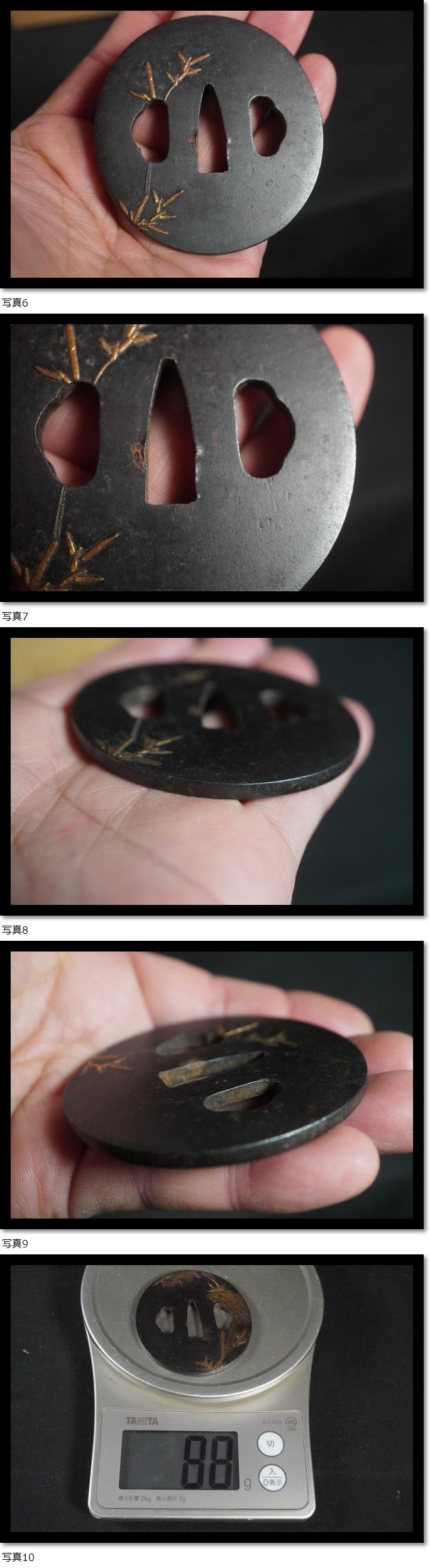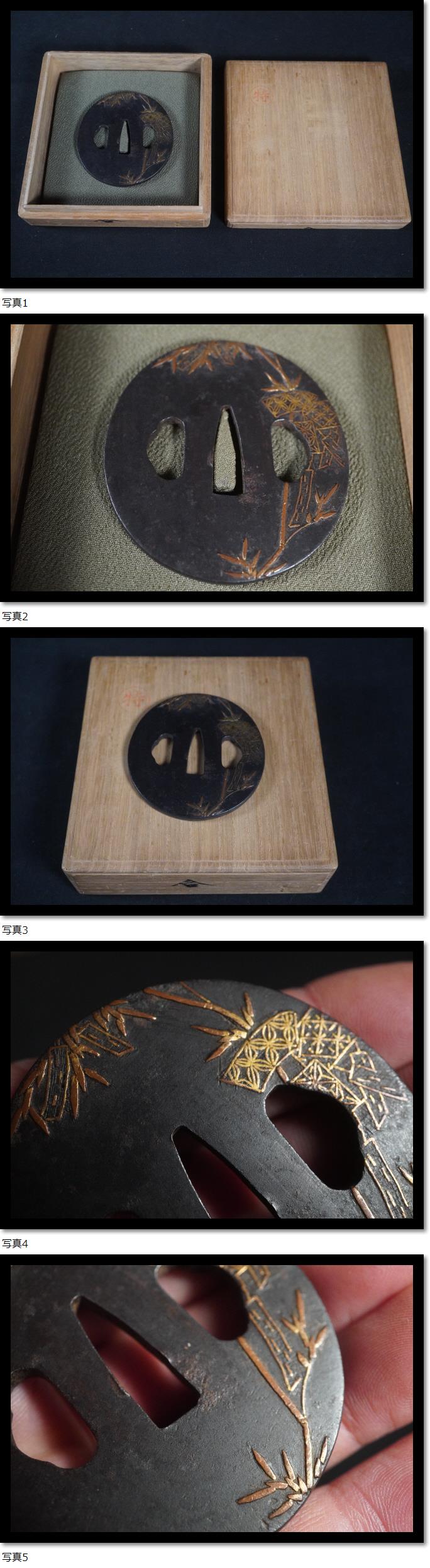 | 武具 脇差 日本刀 刀 刀装具 外装 鍔 明治工芸 金象嵌 笹の図 |