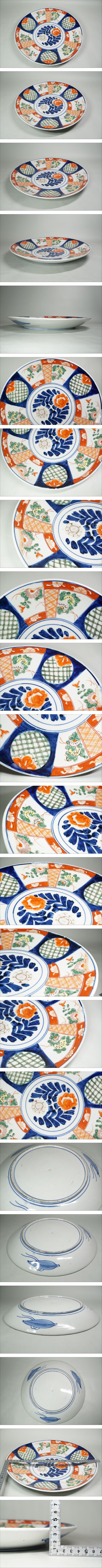| 商品説明 | 古伊万里の野草図窓絵丸文大皿です。状態は目立った割れ欠けなく無傷品で、寸法は口径約31㎝、高さ約4㎝。 |