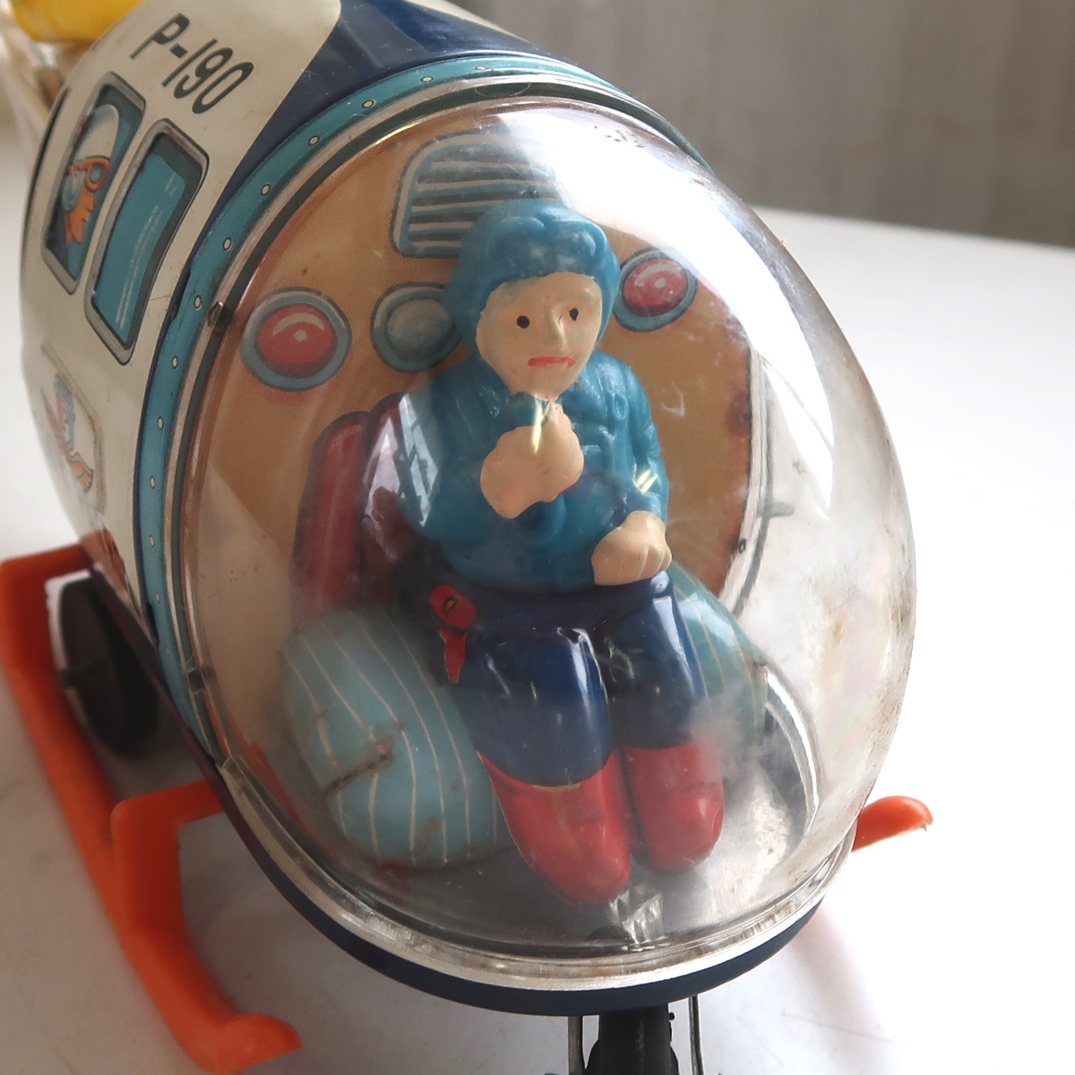 ゼンマイを巻いて翼は回転しますが、ヘリコプターの動きはかなり穏やかです。元からなのか、ゼンマイの調子が悪いのかはわかりません。