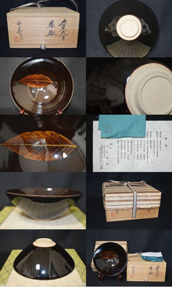【光成】軌窯・久田重義作「木葉天目・茶碗」共箱・未使用・桐箱