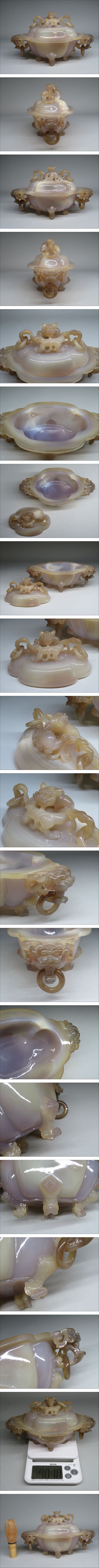 | 【東】清時代 メノウ 瑪瑙製 双耳遊環三足香炉 中国美術/古美術・骨董品 | ||