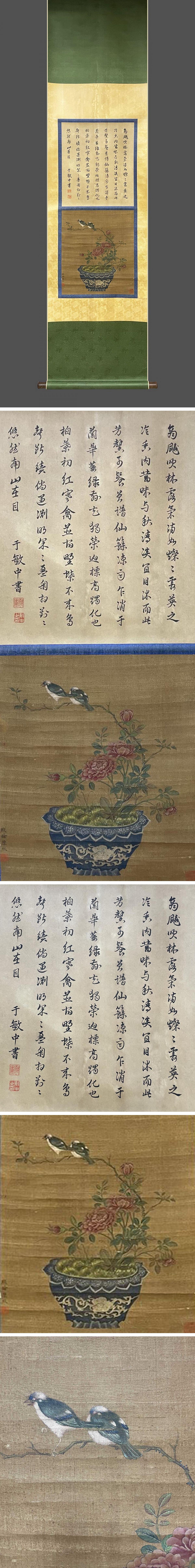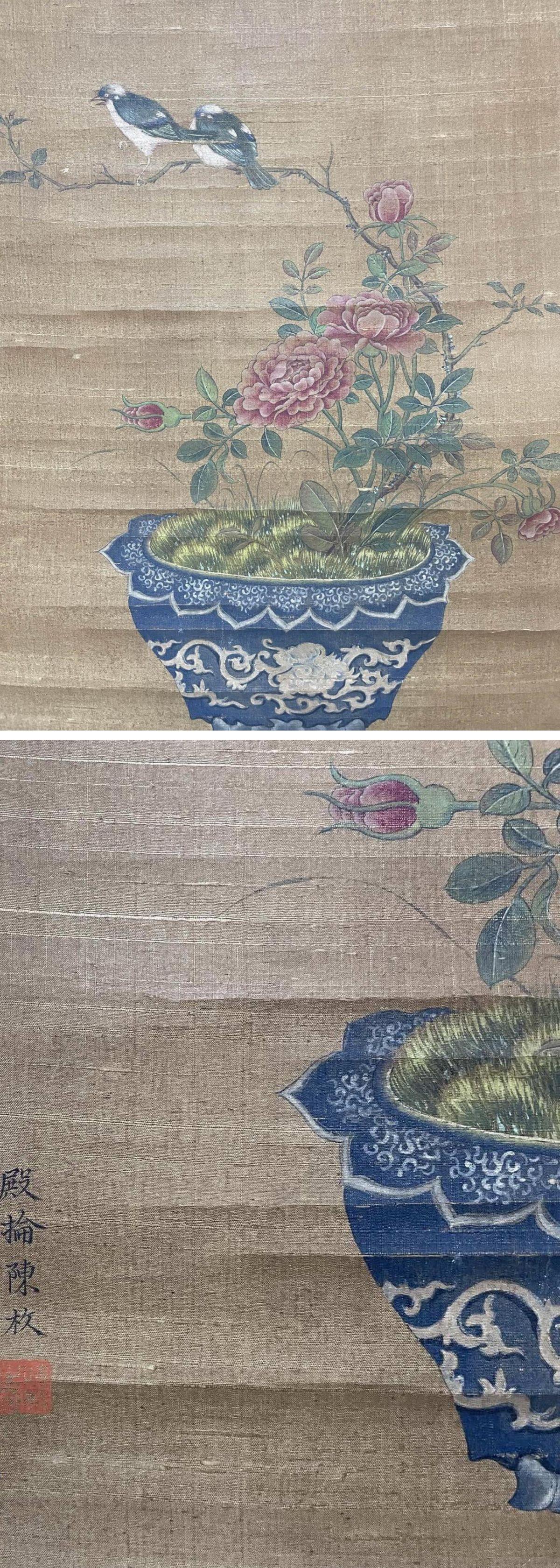 【雲錦】某蒐集家買入「陳枚寫」中国古代画家 絹本【花鳥圖・掛け軸】肉筆保証 巻き物 中国字畫 中国書画 中国書畫8L20-19XW