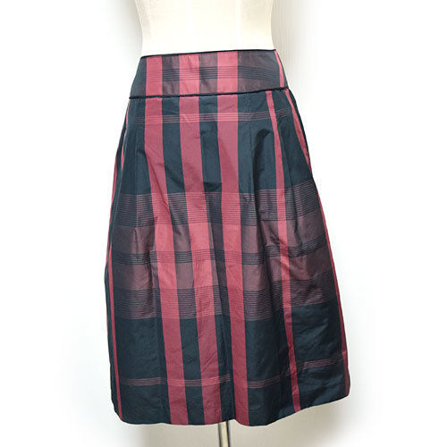 バーバリーらしいチェック柄のフレアスカートです。プリーツが2箇所あります。シルク混でさらっとした手触りです。