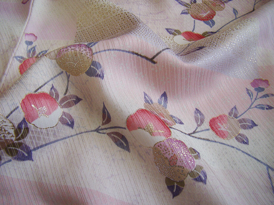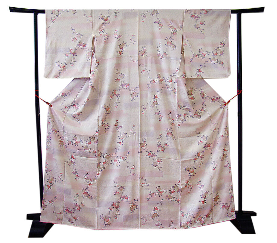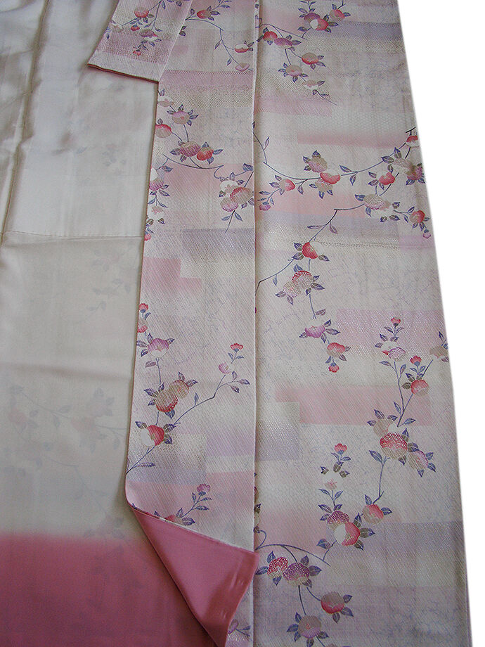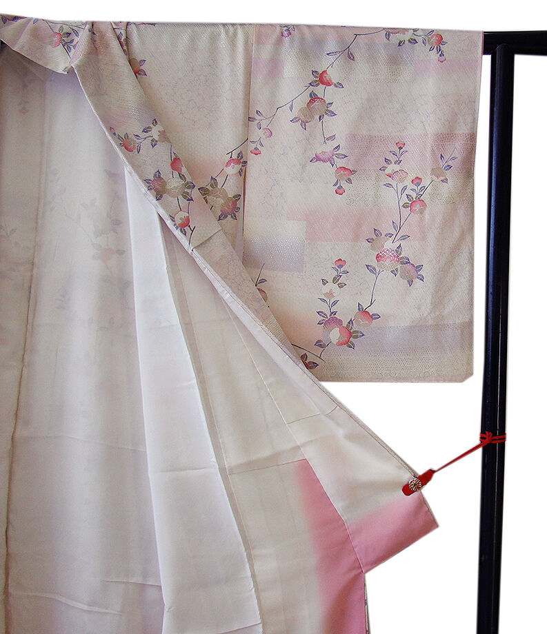 | 商品説明 | こちらのお品は「袷」でございますので、10月~5月までお召頂ければと思います。 とてもしなやかでさらりとした滑らかな手触りの着心地良い極上一越地の生地、 白色地に桜、白藤、白菫色等の横断柄ぼかしに斜線の地模様入りに、 花木柄の染柄に金銀彩加工仕立て、 八掛は撫子色(正絹)、幅広い年代の方にお召し頂けます。 |