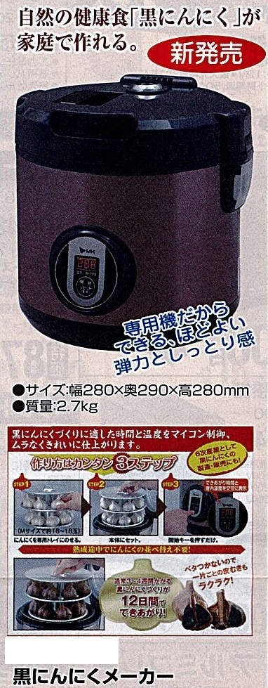 ※自然の健康食「黒ニンニク」が過程で作れる。