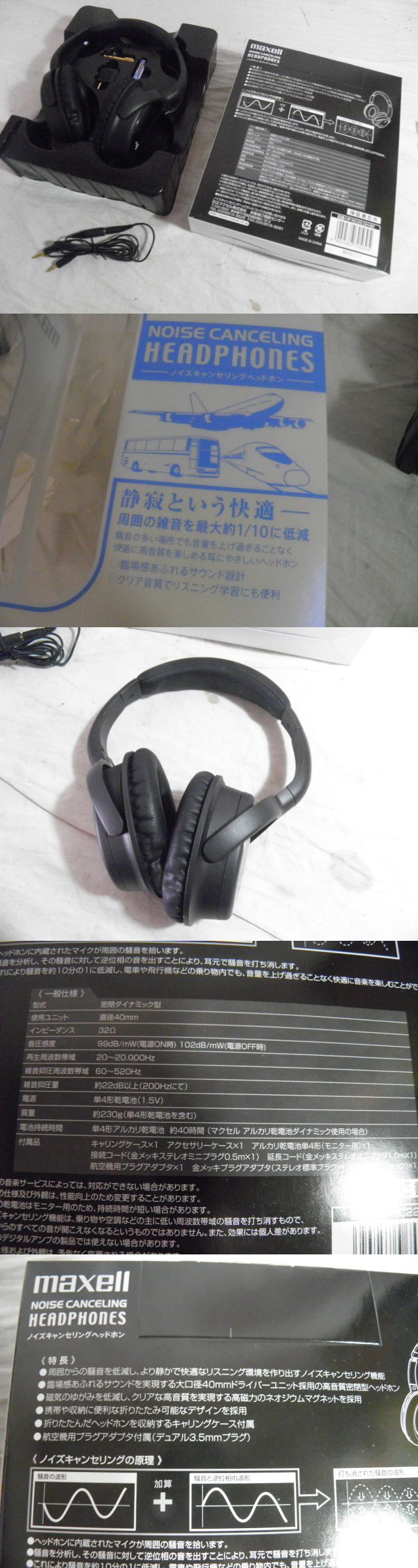 | 未使用 MAXELL マクセル HP-NC22 BK ノイズキャンセル ブラック ヘッドフォン 航空機アダプターつき | |