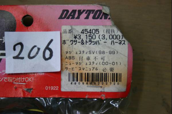 メーカー: ★デイトナ★ 品番: ★45405★ 対応車種名:★デジタルボクサー、デジタルトラッパー兼用。 マジェスティSV(98-99)ABS車不可。ニューマジェスティー(00-01)。★ 試用期間・回数: ★未使用★ 付属品: ★画像にあるもので全てです★ 修復履歴: ★無し★ デジタルボクサー、デジタルトラッパー兼用。 マジェスティSV(98-99)ABS車不可。 ニューマジェスティー(00-01)。 定価¥3240 税込み 新品ですが長期保管の為、パッケージには傷や汚れがあります。 送料無料のためパッケージを外して送ります。 あらかじめご了承いただけるようお願いします。 | |||