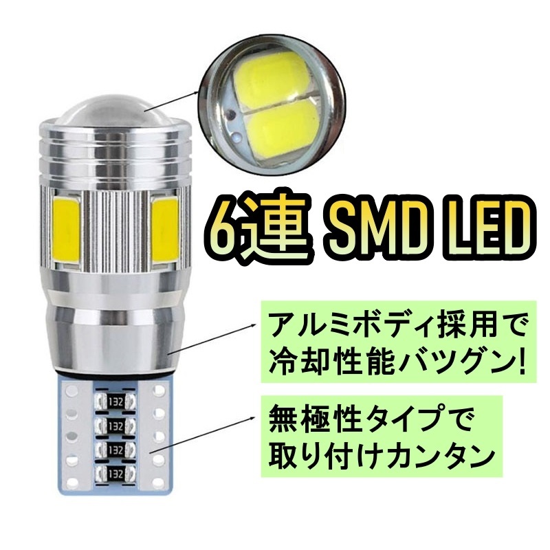 | 発光色:ホワイト ソケット形状:T10 動作電圧:12V LED数:6個 全長:32mm 全幅:12mm 差込幅:10mm 車検対応 | |||