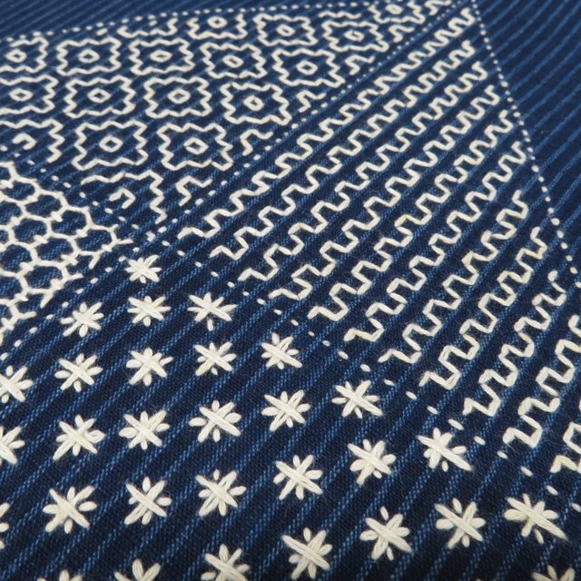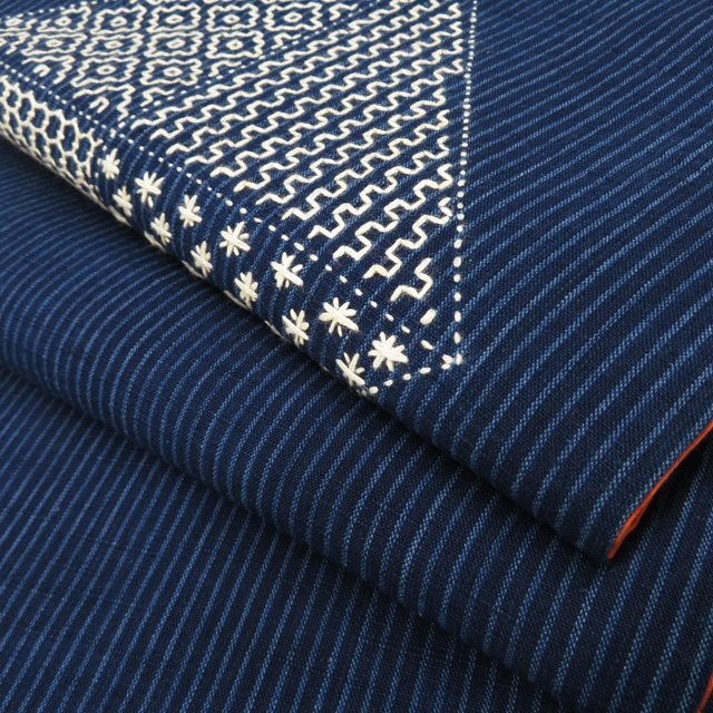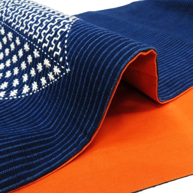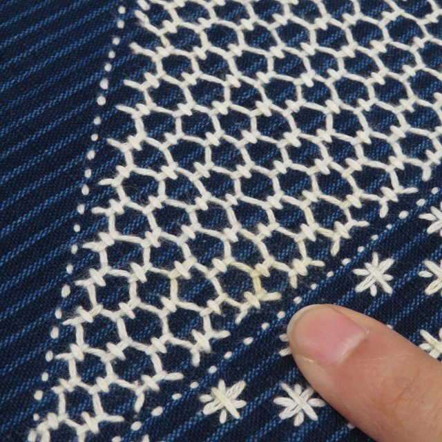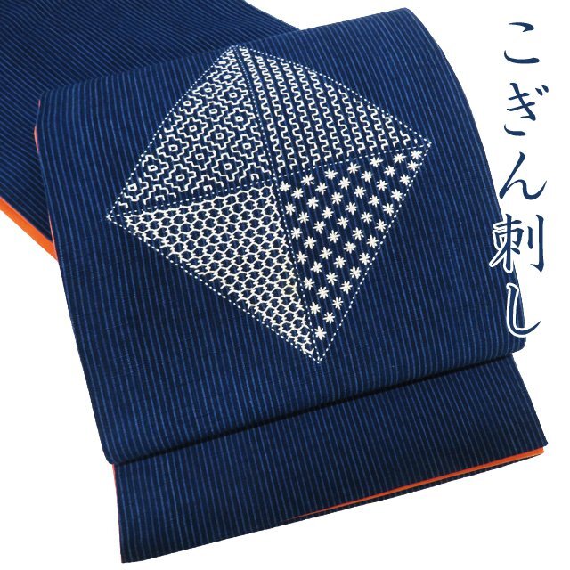 サイズ 447cm x 30.5cm 素材 正絹 商品ランク C ●お色 紺色 青森県津軽地方に伝わる日本3大刺し子の一つ【津軽こぎん刺し】の名古屋帯でございます。 昨今で趣味の手芸としても人気が高まっているこぎん刺しは、布の目を塞ぐように糸を刺し、丁寧に施した意匠が特徴です。 帯地のお色や風合いを活かし実にバランスよく密に表現されており、素朴でありながら静かな気品を感じます。 シンプルな配色も美しく、紬のおきものや小紋などに合わせて幅広いシーンで重宝いただけます。 手作業によるおおらかな仕上がりで和姿を優雅に彩ってくれる素敵な一条、是非この機会にお手元へお迎えくださいませ。 お太鼓部分の白刺繍に少しシミがございますが、まだまだご着用いただけるお品物です。 一部商品は実店舗・他サイトでも並行して販売しておりますので売り切れの際はご了承ください。 その他多数販売中 de- | ||||||