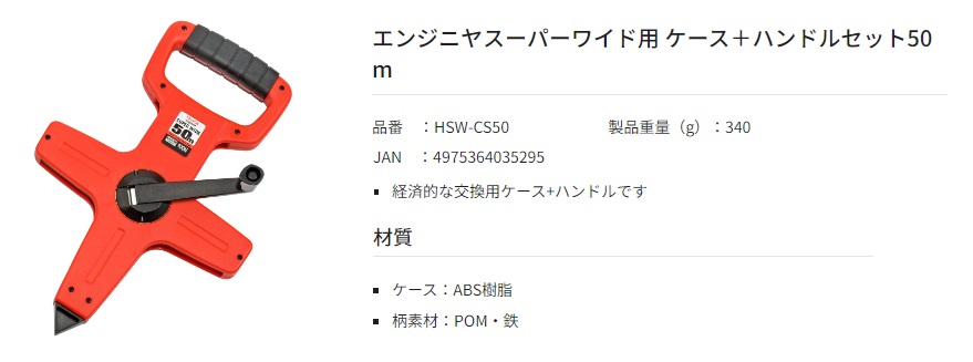 タジマ TAJIMAエンジニヤスーパーワイド用 ケース+ハンドルセット50mHSW-CS50■特長・経済的な交換用ケース+ハンドルです■材質・ケース:ABS樹脂・柄素材:POM・鉄
