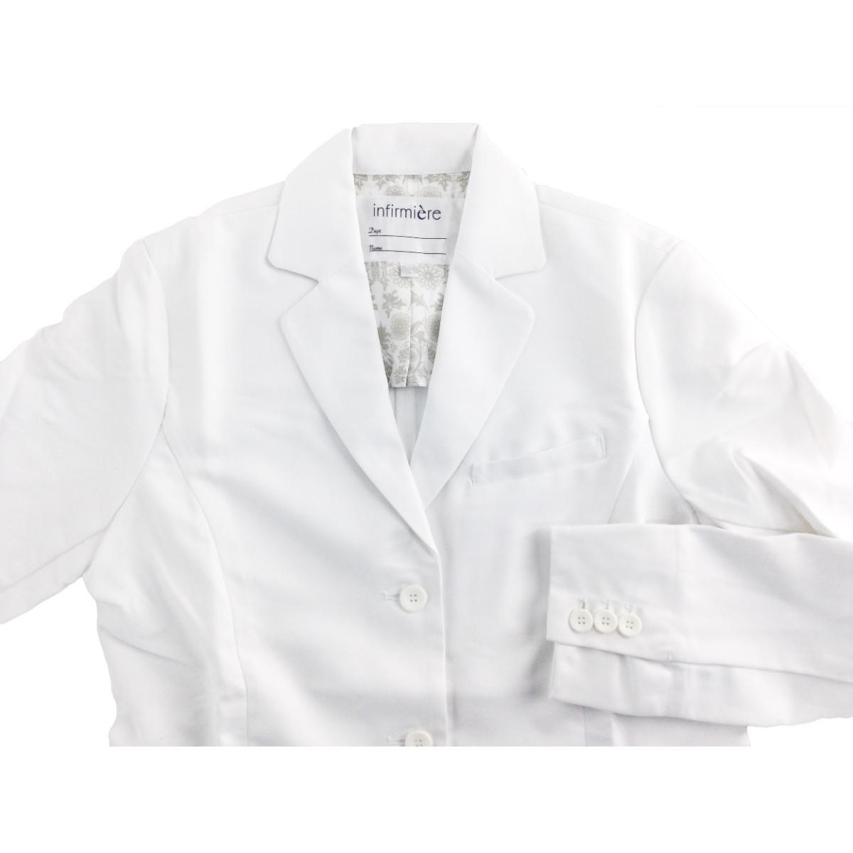 ウエストシェイプでスタイルよく見せる切替え入りのAライン&Vゾーンの3つボタン仕様で品格が演出できる腰高デザインのドクターコートです。