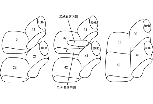 | ■形状 | ※1列目アームレスト用カバー無し ※シートカバーを取り付けた状態で3列目シートを床下格納した場合、生地の厚み分若干浮きます。 |