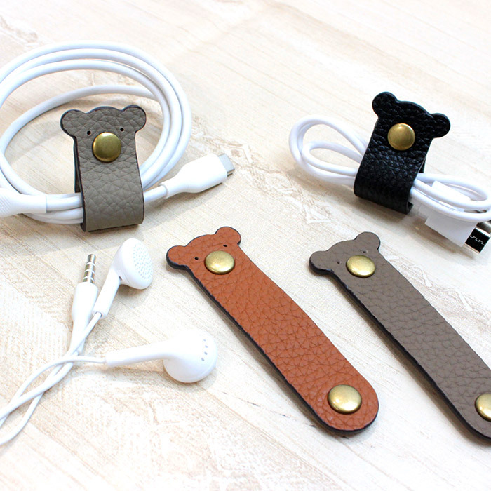 | 商品名 | イヤホン コードホルダー イヤホンケーブル まとめる 革 かわいい くま【ブラック】| コードクリップ ケーブルホルダー コード 巻き取り 可愛い |