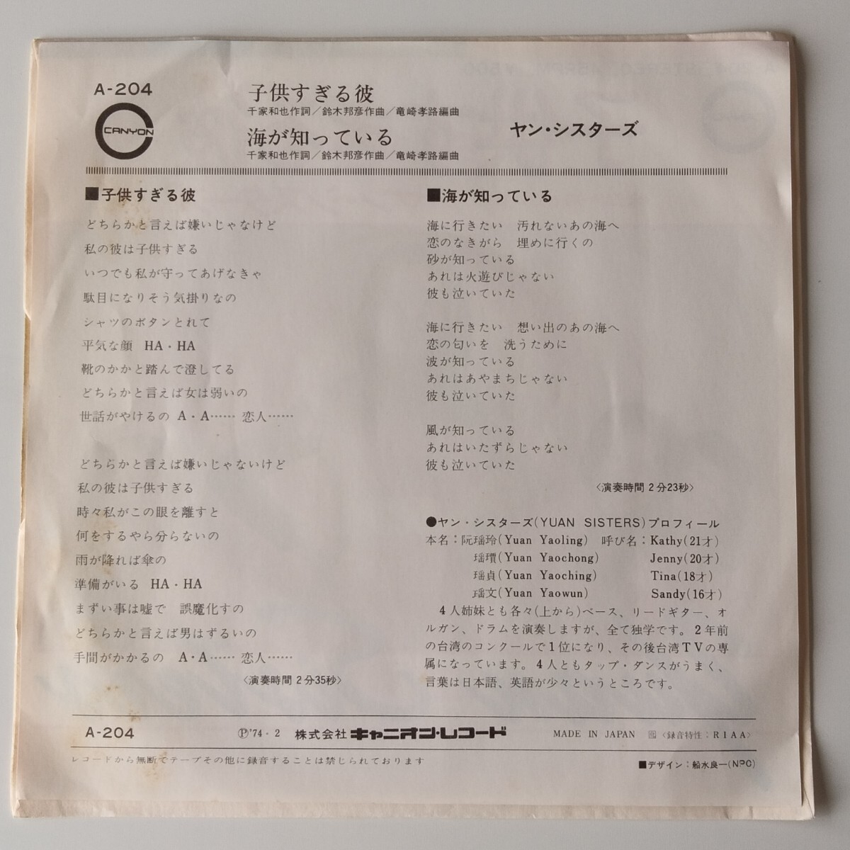 ヤン・シスターズ/子供すぎる彼(A-204) EPです。| 出价者 | 信用 | 价格 | 时间 |