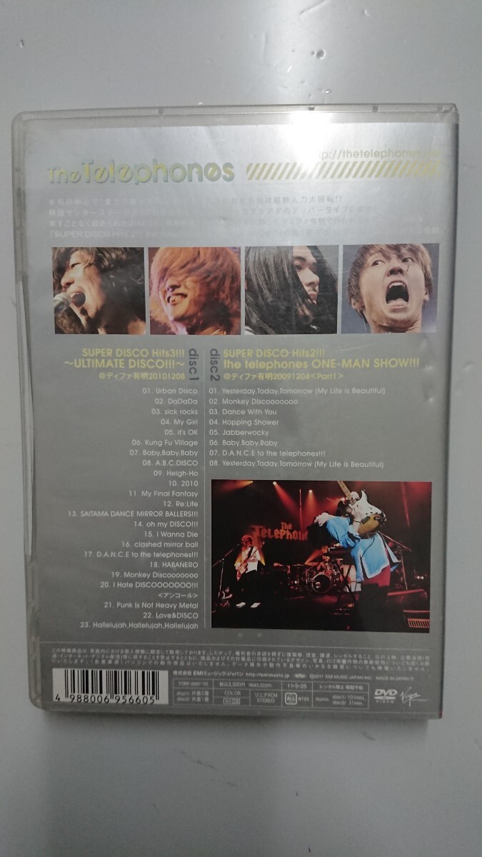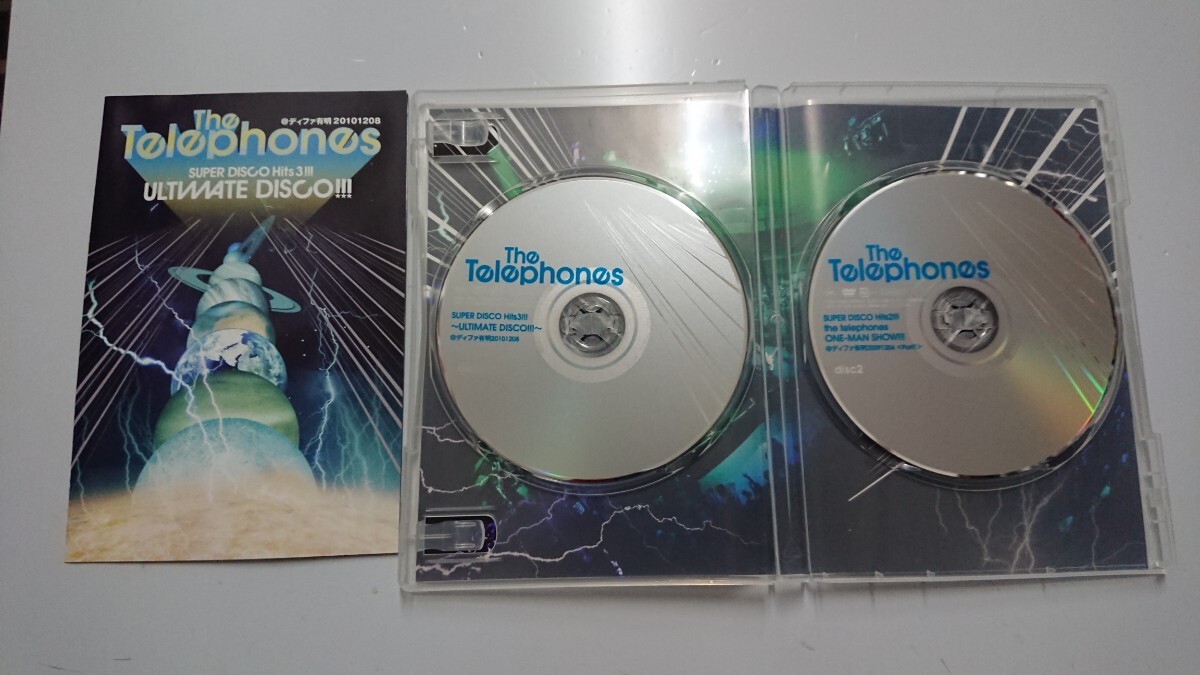 the telephones SUPER DISCO Hits 3!!! ULTIMATE DISCO!!! @ディファ有明 20101208 DVD2枚組 中古です。ディスク2枚、パンフ、ケースの出品です。中古ですがディスクキズ汚れ少ないです。発送は定形内270円サイズです。中古ですのでノークレームノーリターンです。