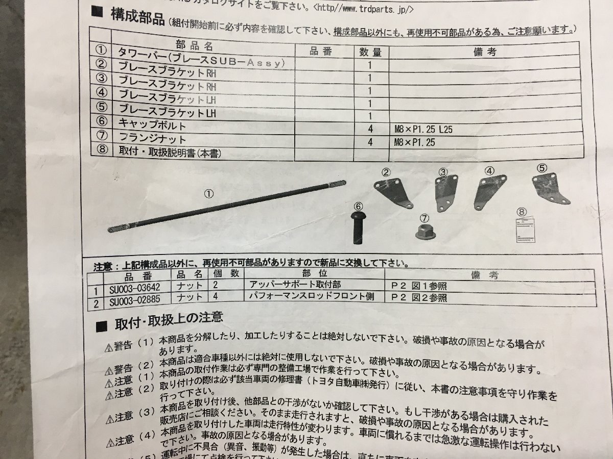 ZN6 86 TRD フロント ストラットタワーバー MS324-18001 取扱説明書 |