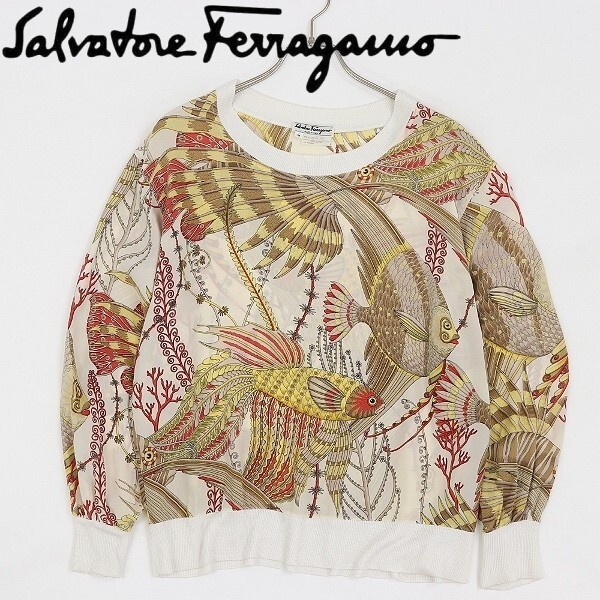 | ◆Salvatore Ferragamo サルヴァトーレ フェラガモ シルク100% 魚 総柄 トップス M | |