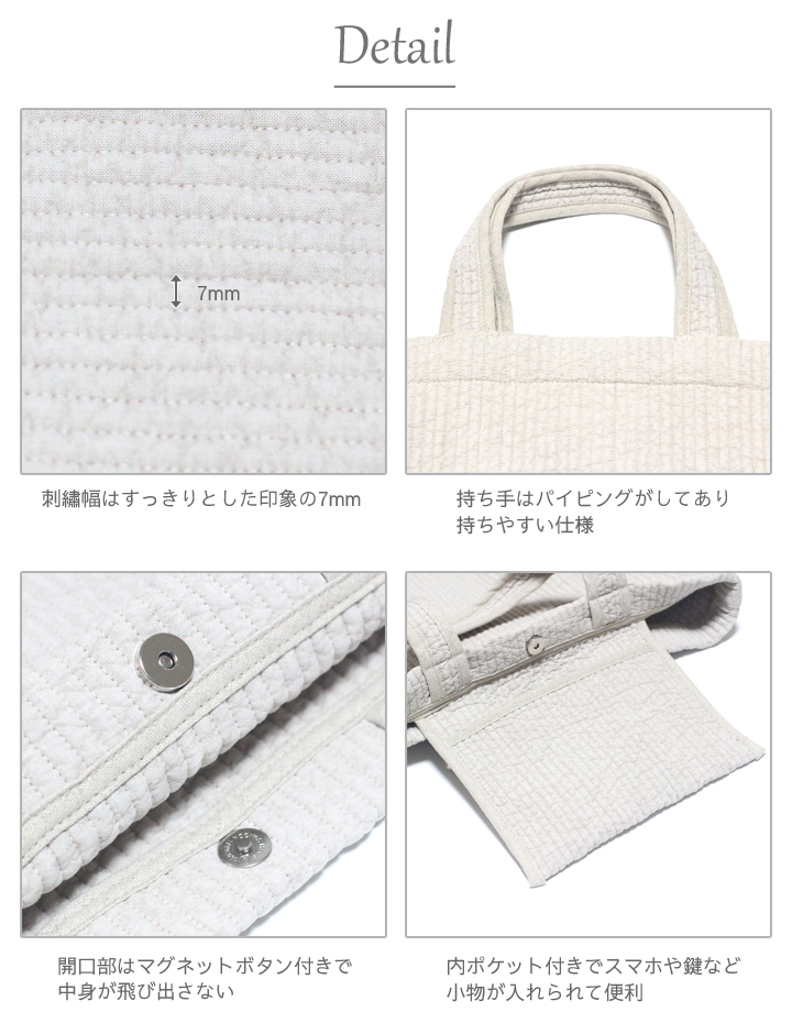 | 商品説明 | 『ヌビバッグ』とは?! ヌビとは韓国語でキルティングしたものを意味します。 そのキルティングの生地で韓国の布団であるイブルを作ることからイブルバッグとも言います。 ◆特徴◆ やわらかく肌触りが抜群! 軽くて肩コリ知らず! 洗える生地なので清潔! 大人気のリボンの刺繍トートバッグです。ナチュラルカラーですので、どんなファッションにもマッチします♪ Mサイズは、A4サイズのファイルや500mlペットボトルは余裕で入る大きさいです。 持ち手が36cmで肩がけもできますので、長時間のお出かけもOK!! *柄の出方は個体差があり、掲載画像と異なりますので予めご承知おきくださいませ。 手持ちのバイピングの濃さは入荷時期によって掲載画像と若干相違がございます。 手持ちや内ポケットの刺繍の有無は、入荷時期によって異なります。 |
