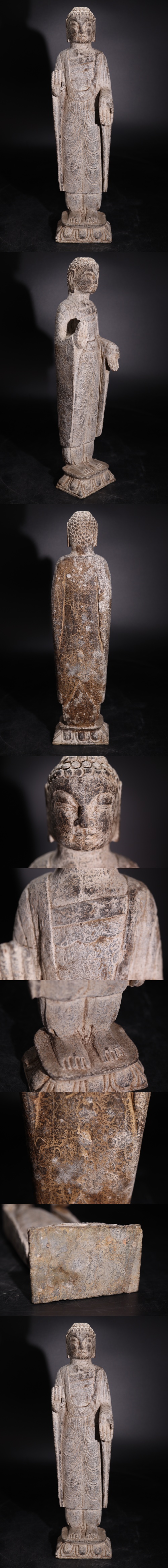 | 時代 石製 阿弥陀如来像 石仏 / 仏教美術 仏像 石工芸 細密彫刻 置物 煎茶飾 .G2061 |