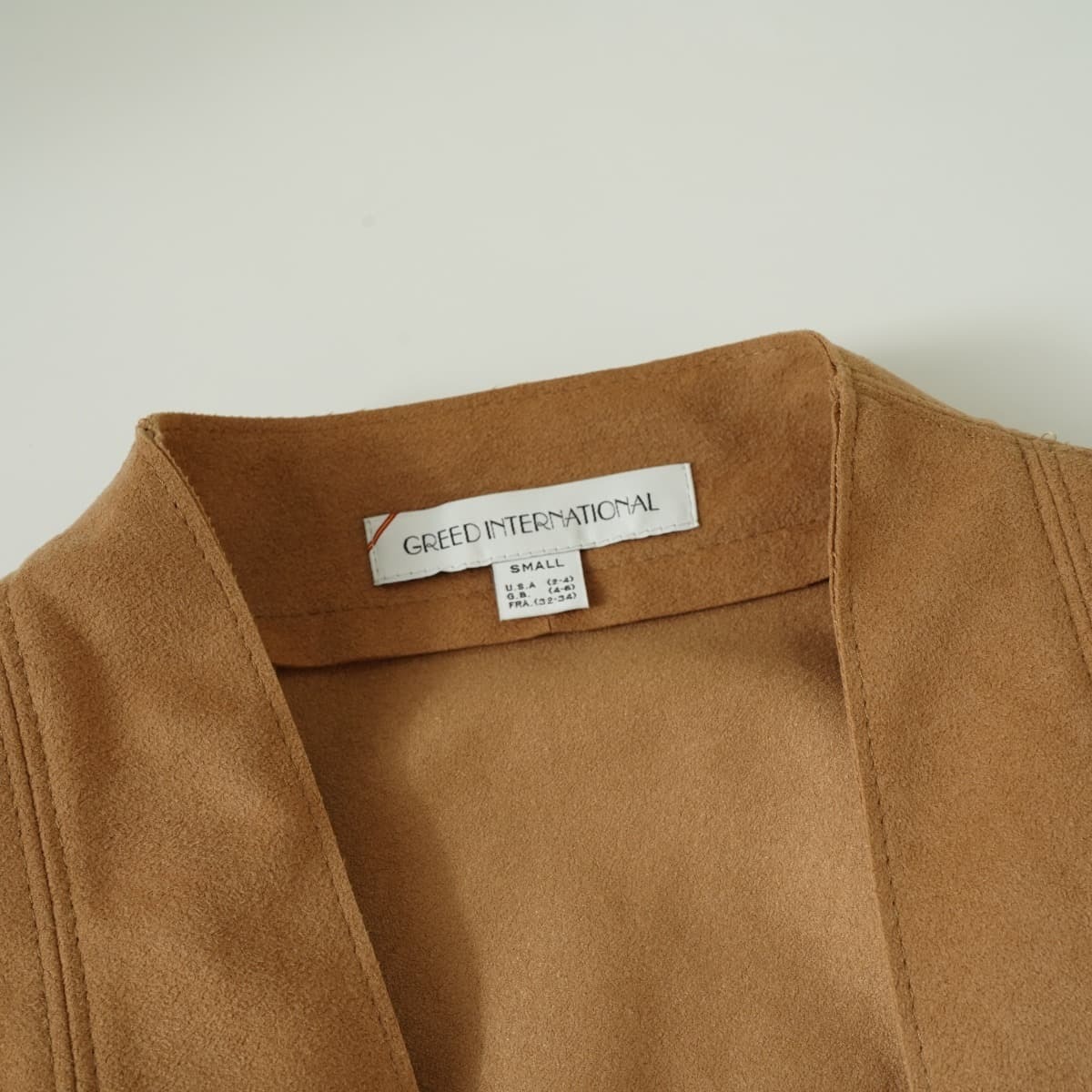 商品名:GREED グリード Soft Suede JAcket ソフト スエード ジャケット ノーカラー ショール キャメル ベージュ