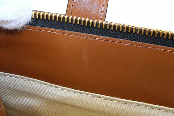 | 状態 | 外側:ポケットに押し跡あり。正面左下部に薄黄色系シミ汚れあり。 内側:レザー部分所々薄キズあり。 金具:微細なキズあり。 |