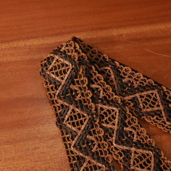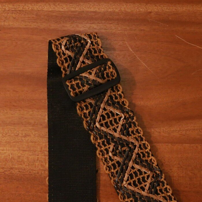 2色のヴィニール・レザーの紐で模様を編み込んだ、ストリング・ウィーヴのストラップです。 裏側は強度に優れたブラックのポリ繊維のストラップになっています。 標準的な50mm幅で、エンド部分には耐久性のあるレザーを使用しています。 SPEC ■長さ: 約920~1,700 (mm) ■幅: 約50 (mm) ■アジャスター: スライド式 ※この製品は、染色や皮革の使用という特質上、衣服へ色移りする場合があります。 |