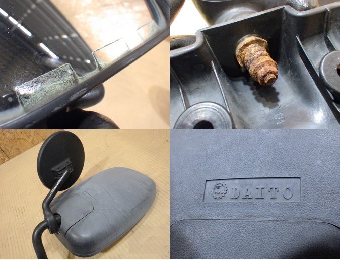 | 備考 | サイドミラー左右セット、ドアミラー、純正、右:MURAKAMI 0994、左:DAITO写真にある物のみ、ガスケット付、 ジャンク品(状態が悪い/年式が古い/部品取り向け)、左ミラー:無塗装部色アセ/ベースサビ、右ミラー:ミラー内劣化、全体:傷&汚れ&スリキズ、 | ||||