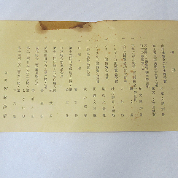 | 風炉釜用の箱 箱書 釜師 佐藤浄清造 作歴書付 箱のみです | |||||||||||||||||||||||||||||||||||||||||||||||||||