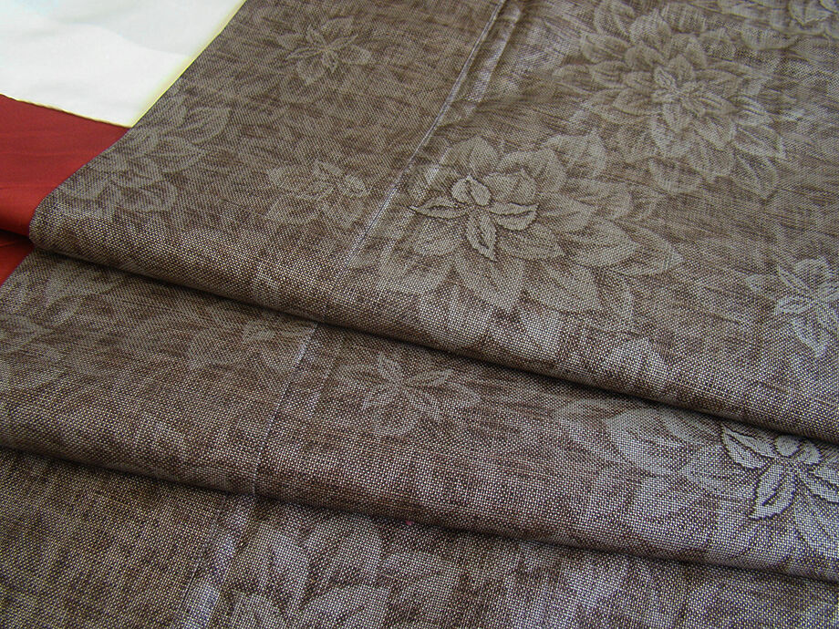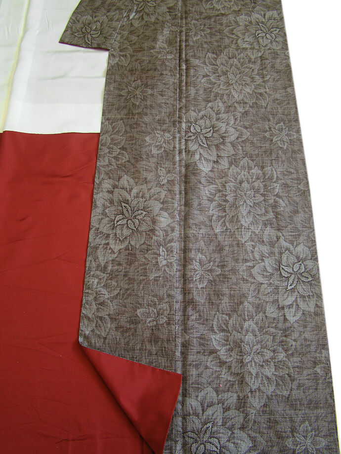 | 商品説明 | こちらのお品は「袷」でございますので、10月~5月までお召頂ければと思います。 大島特有の大変にさらりとした生地は裾さばきが良く、程よい独特のハリやシャリ感に満ち 着心地が良いため、現代のお洒落着として大変人気がございます。 大島特有のシャリ感のある肌触りと心地よい絹なりが、洒落心をくすぐる 本場大島紬の径横絣七マルキです。 鉄色地に花柄の織柄が精緻な手技を駆使した径横絣七マルキで織り成されております。 八掛は渋いワイン色(正絹)、証紙付き、幅広い年代の方にお召し頂けます。 しなやかな扱い易く結び易い袋帯(六通柄)は、 胡桃、茶、こげ茶色等の茶系の織柄が温もり溢れるお洒落な帯姿を謳っております。 帯揚げは朱赤色地に花柄に白色の絞り柄、 帯〆は平組、コーラルピンク色地に青、ベージュ色の編み込みの組紐となっております。 |