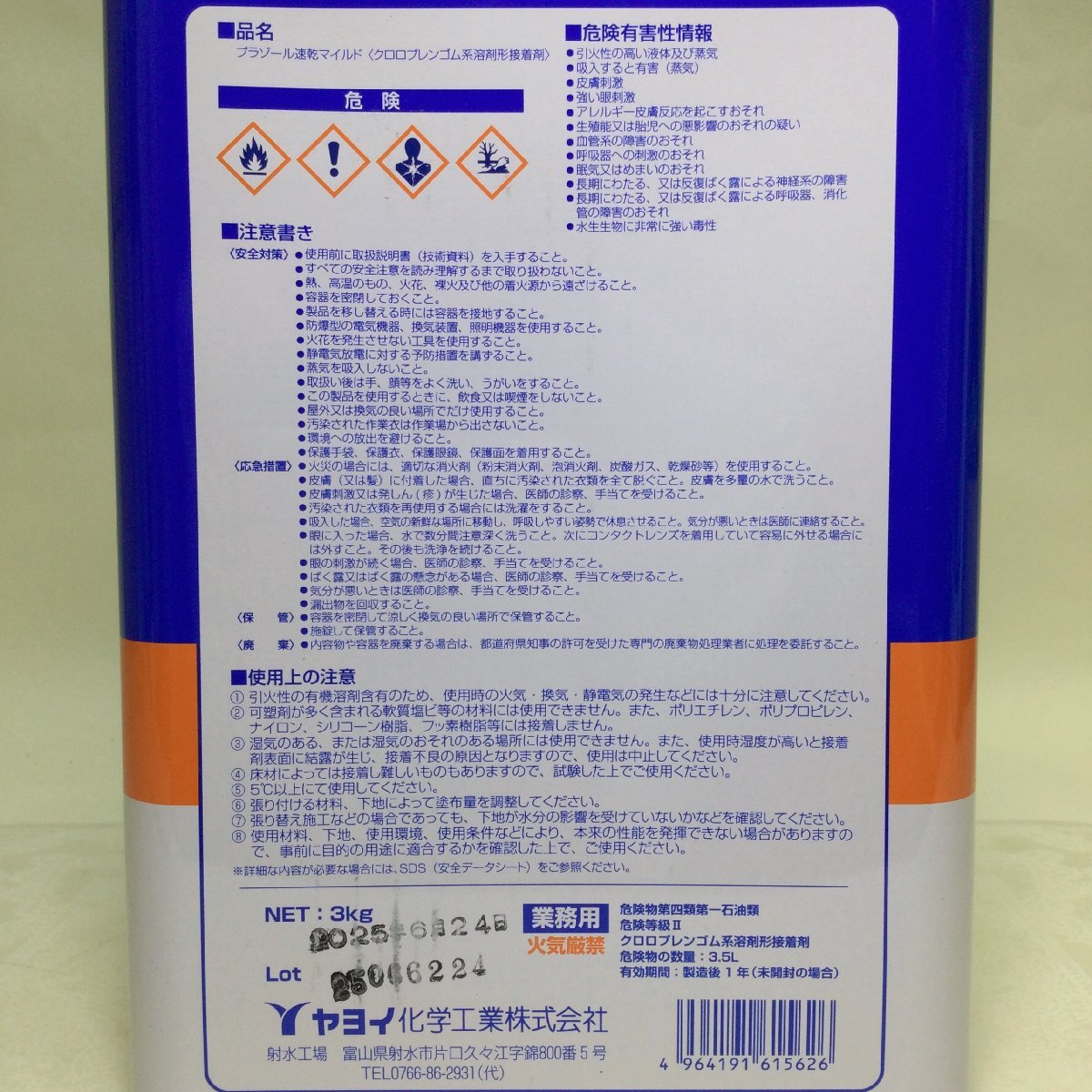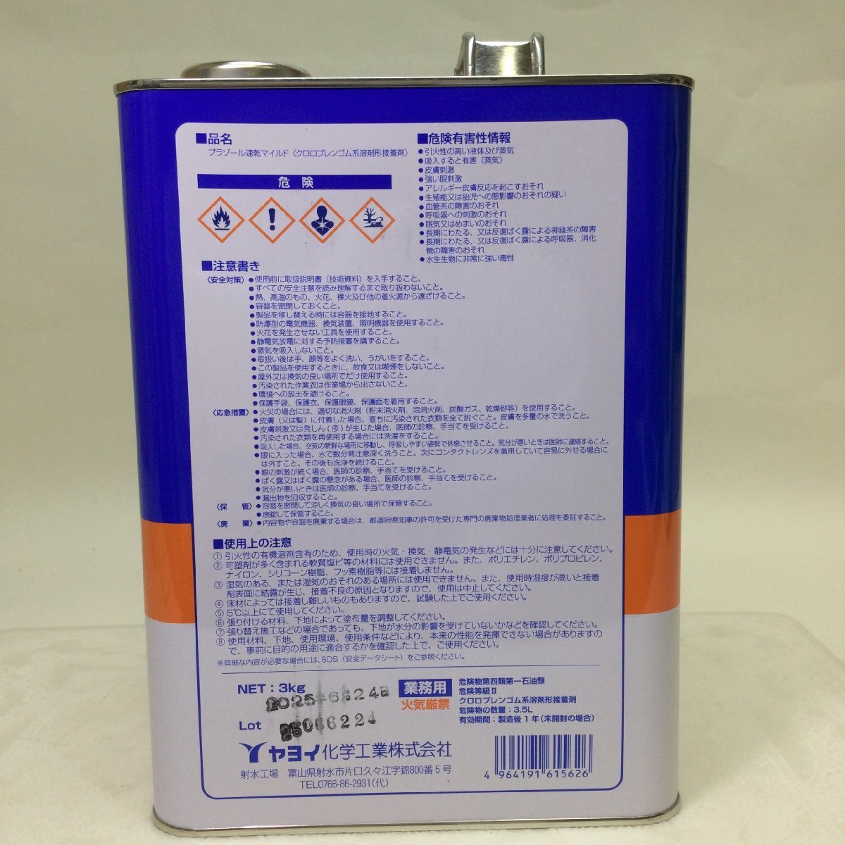 | プラゾール速乾マイルド クロロプレンゴム系溶剤形接着剤 3㎏ 床タイル・シート用接着剤 ヤヨイ化学工業 |